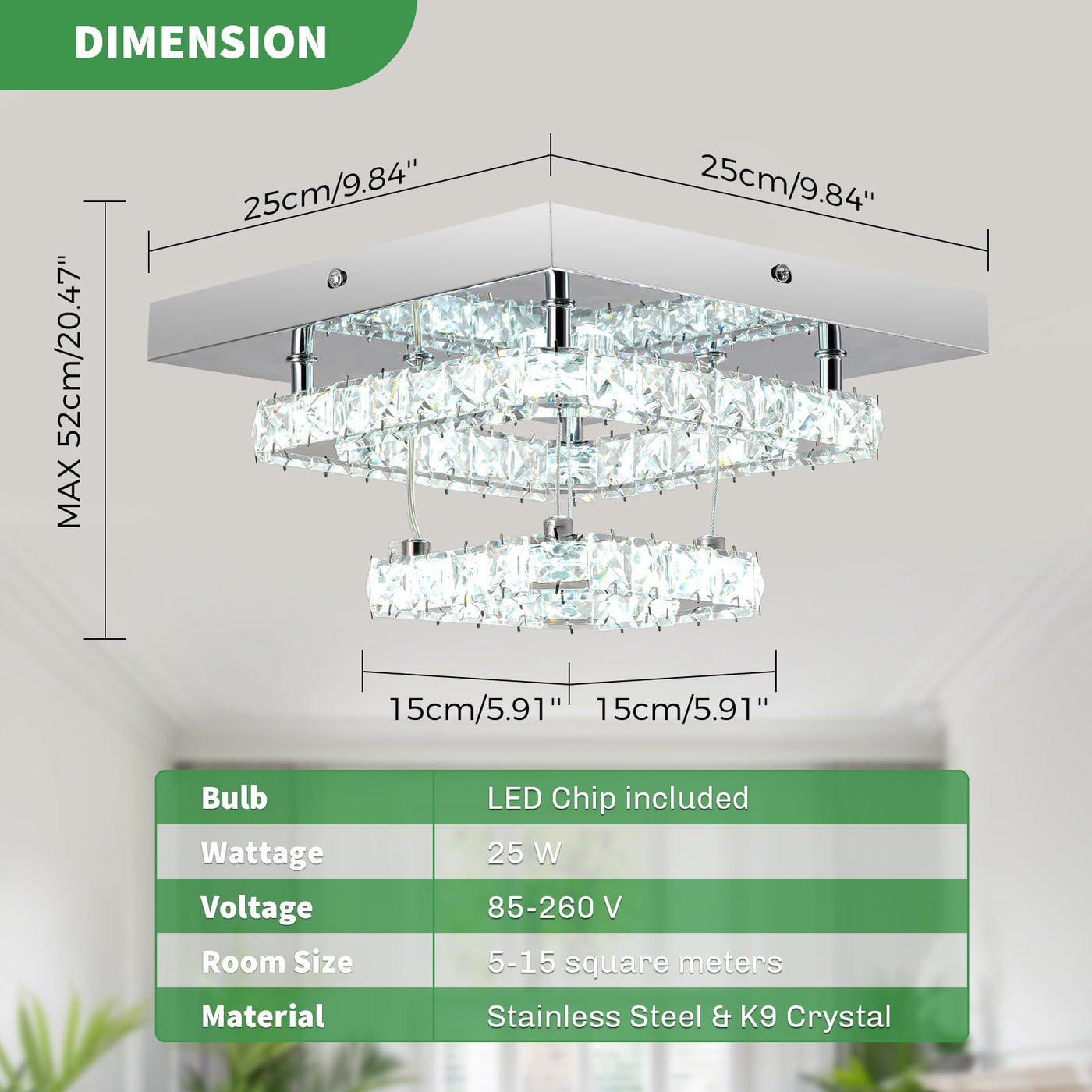 Are you looking for a suitable ceiling light to decorate your house? Here is a ceiling light suitable for you. Technical parameters: LED Wattage:16W Nominal Voltage: AC95-265 V Material:K9 Crystal&Stainless Steel Ideal Area:5-15? Install:Flush Mounted Light Fixture Packing list: 1x crystal ceiling light kit 1 x instructions Place of use: Crystal ceiling light can use as kitchen,bedroom,living room,dining room ,Hallway ,small children room ,office, etc.