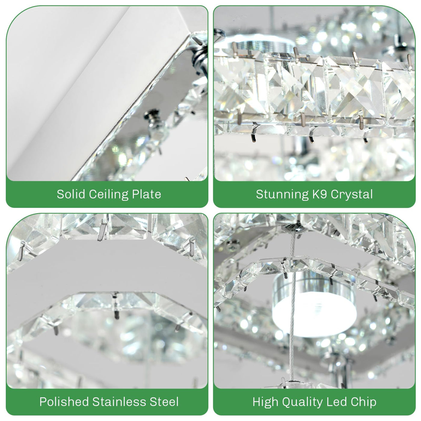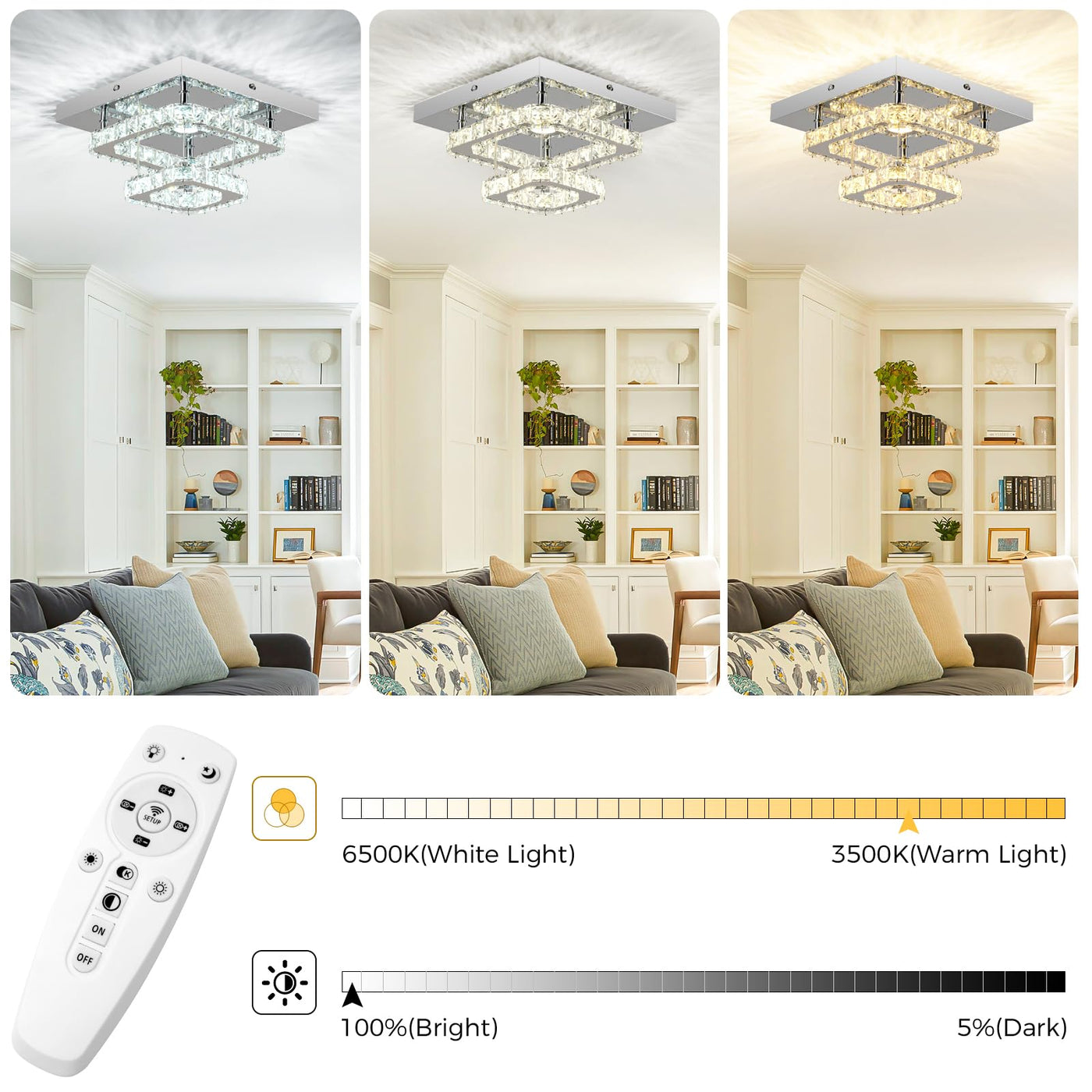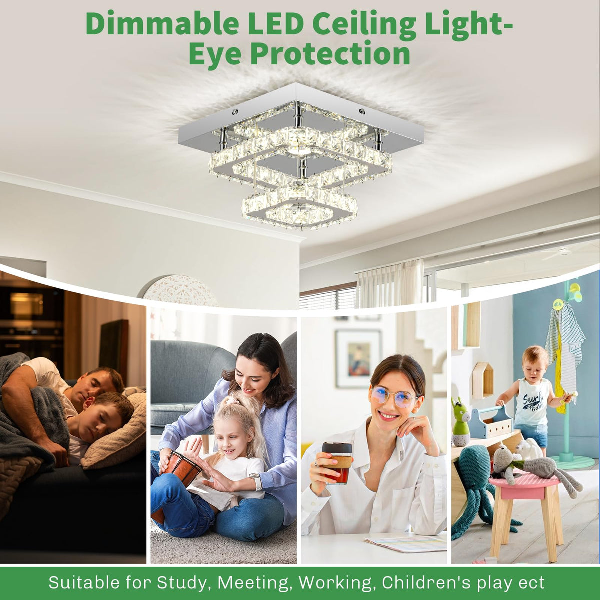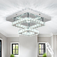 Rheafon Dimmable Crystal Chandelier With Remote Control, 2-Layer Flush Mount Ceiling Light For Bedroom, Kitchen, Hallway & Stair