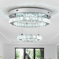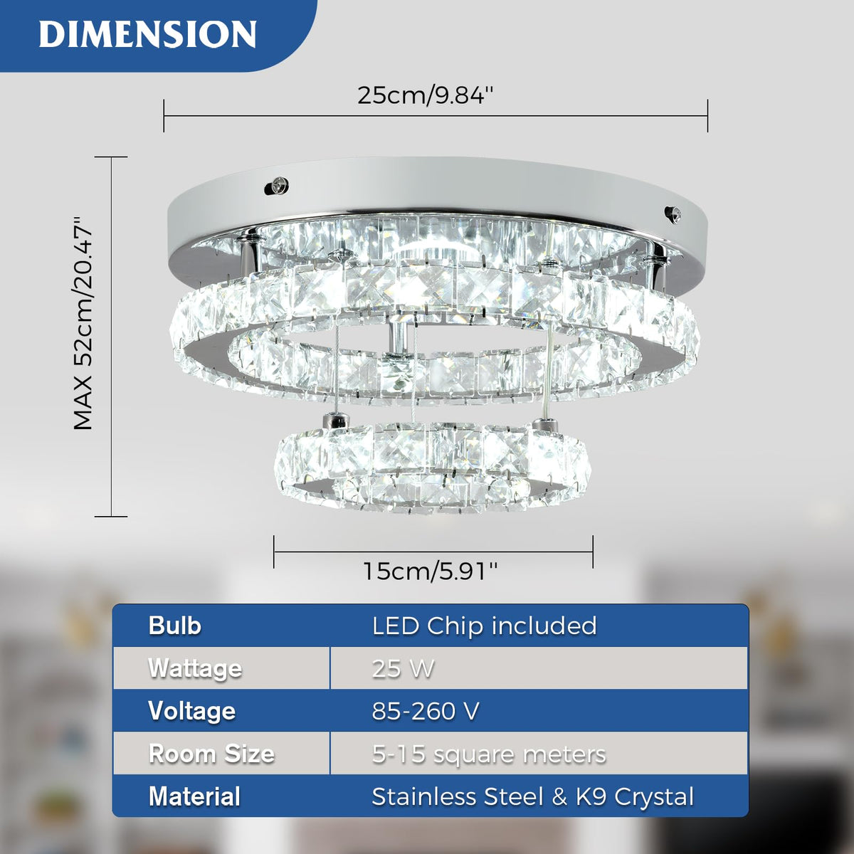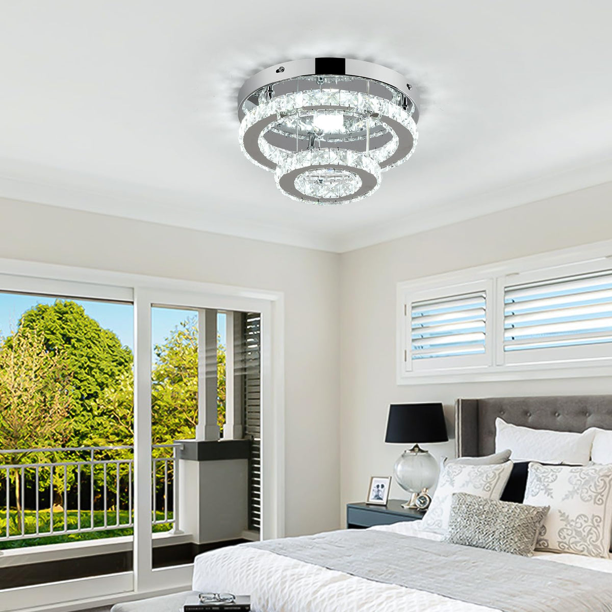 Rheafon Modern Crystal Chandelier 2-Layer Round Crystal Led Ceiling Light Fixture Flush Mount Chandelier Light With Crystals For