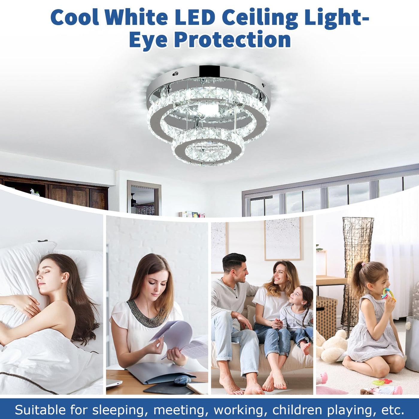 Are you looking for a suitable ceiling light to decorate your house? Here is a ceiling light suitable for you. Technical parameters: LED Wattage:16W Nominal Voltage: AC95-265 V Material:K9 Crystal&Stainless Steel Ideal Area:5-15? Color temperature: 6500 K(Cool White) Install:Flush Mounted Light Fixture Packing list: 1x crystal ceiling light kit 1 x instructions Place of use: Crystal ceiling light can use as kitchen,bedroom,living room,dining room ,Hallway ,small children room ,office, etc.