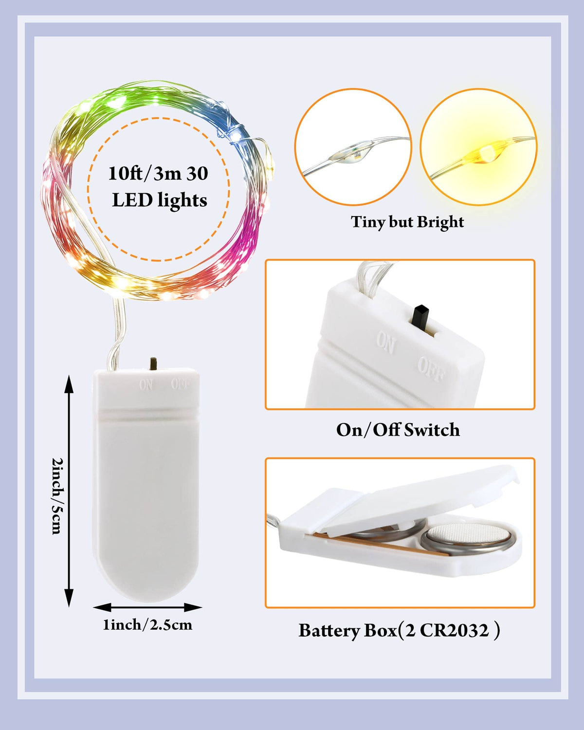 Riakrum 50 Pieces 10Ft 30 Valentine'S Day Led Fairy Lights Battery Operated Tiny Lights String Small String Lights For Jars Starry Waterproof String Lights For Diy Wedding Party (Colorful)