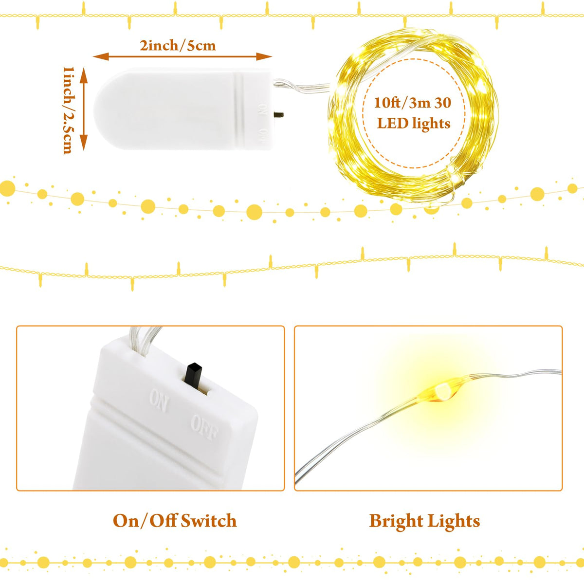 Riakrum 50 Pieces 10Ft 30 Valentine'S Day Led Fairy Lights Battery Operated Tiny Lights String Small String Lights For Jars Starry Waterproof String Lights For Diy Wedding Party (Warm White)