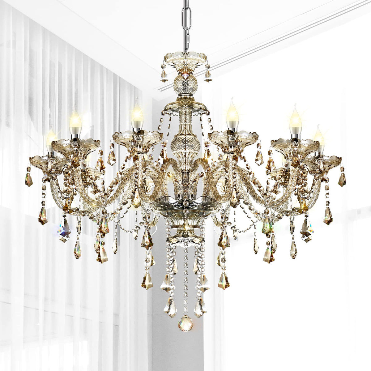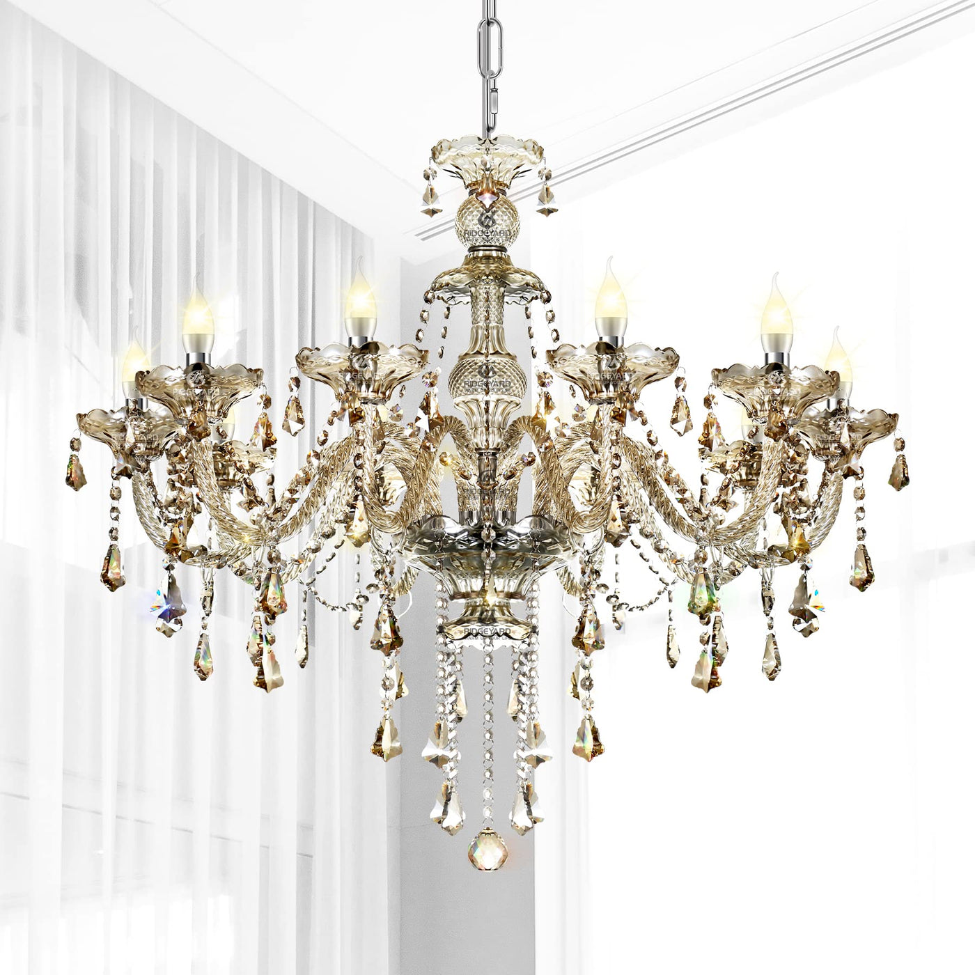 Transform your living space with the elegance and charm of the Ridgeyard Crystal Chandelier, where style meets functionality.