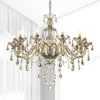 Ridgeyard 10-Light Cognac Crystal Chandelier Modern Ceiling Fixture For Dining Room Decor