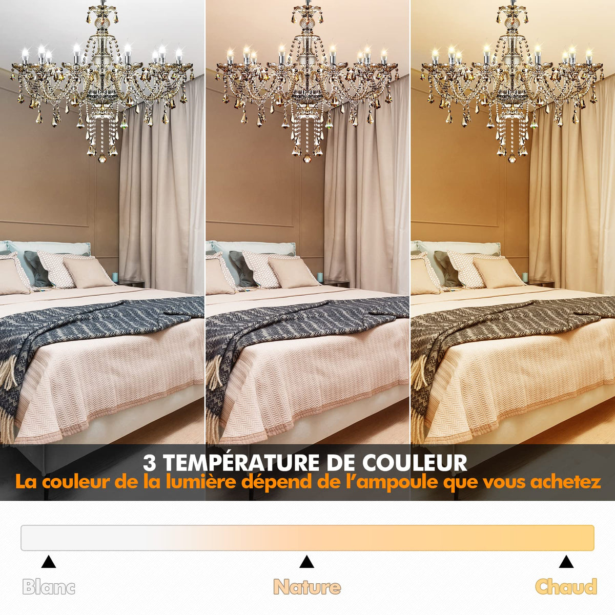 Q: What is the color of the Ridgeyard chandelier, and how does it compare to other colors?A: The Ridgeyard chandelier features a beautiful cognac color, which is distinct from gold or clear colors. It provides a luxurious and elegant appearance, enhancing the decor of any room.