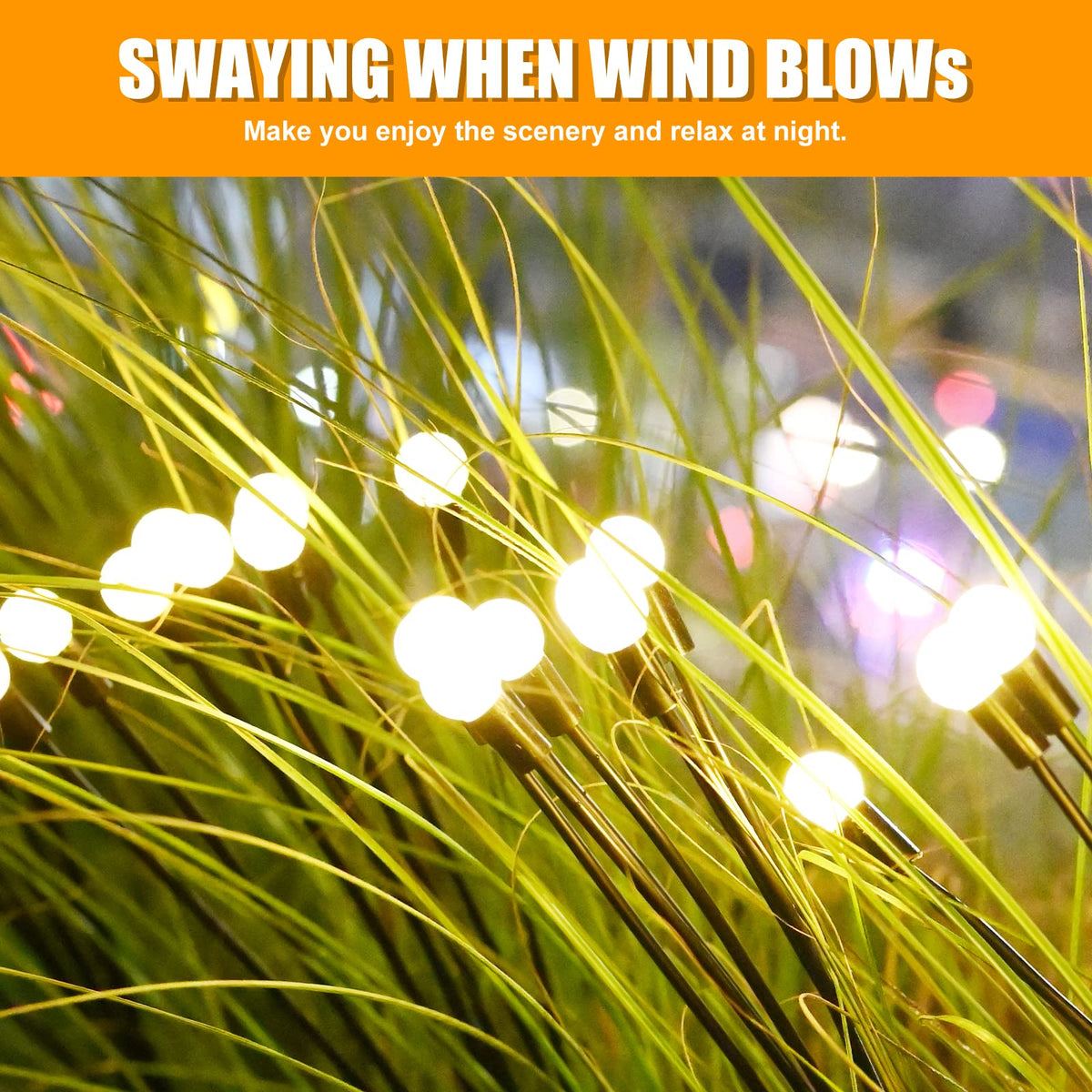Rikuy Solar Garden Lights 4 Pack, Upgraded Total 32 LED Solar Firefly Lights with 8 Lighting Mode, Sway by Wind, Waterproof Sola