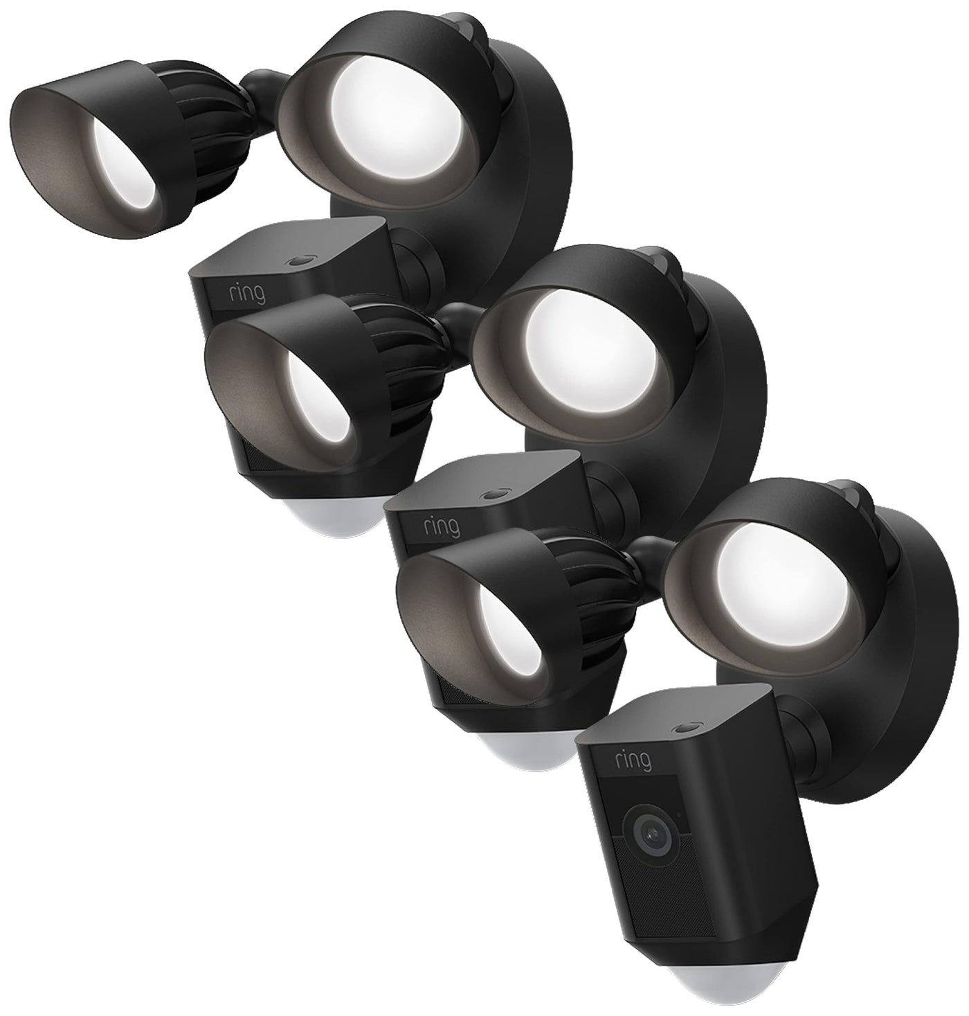 1080p HD security camera for your home or business with motion-activated LED floodlights, 105dB security siren, Two-Way Talk, and customizable motion zones. | Get motion-activated notifications on your phone, tablet or PC and check in at home anytime with Live View all in the Ring app. | Customize motion zones in the Ring app to fine-tune which areas you want to focus on. | Eliminate blind spots or dark areas at home or your business with built-in Color Night Vision and two LED floodlights. | Easily hardwire to the outside of your home and connect to wifi for around-the-clock power and peace of mind. | Save your recorded videos for up to 180 days to rewatch any time, get alerts for people and package, and so much more with a Ring Home subscription (sold separately). | For added peace of mind, pair with Alexa to help you keep an eye on your home. Connect with Alexa to hear motion alerts on your compatible Echo device or see a Live View with an Echo Show, Fire TV, or Fire Tablet. Talk to visitors by saying,