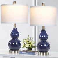 Rinweey Double Gourd Ceramic Table Lamps Set Of 2, Modern Navy Blue Bedside Lamps For Night Stand, Contemporary Nightstand Lamps
