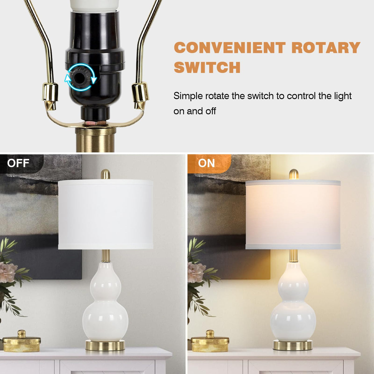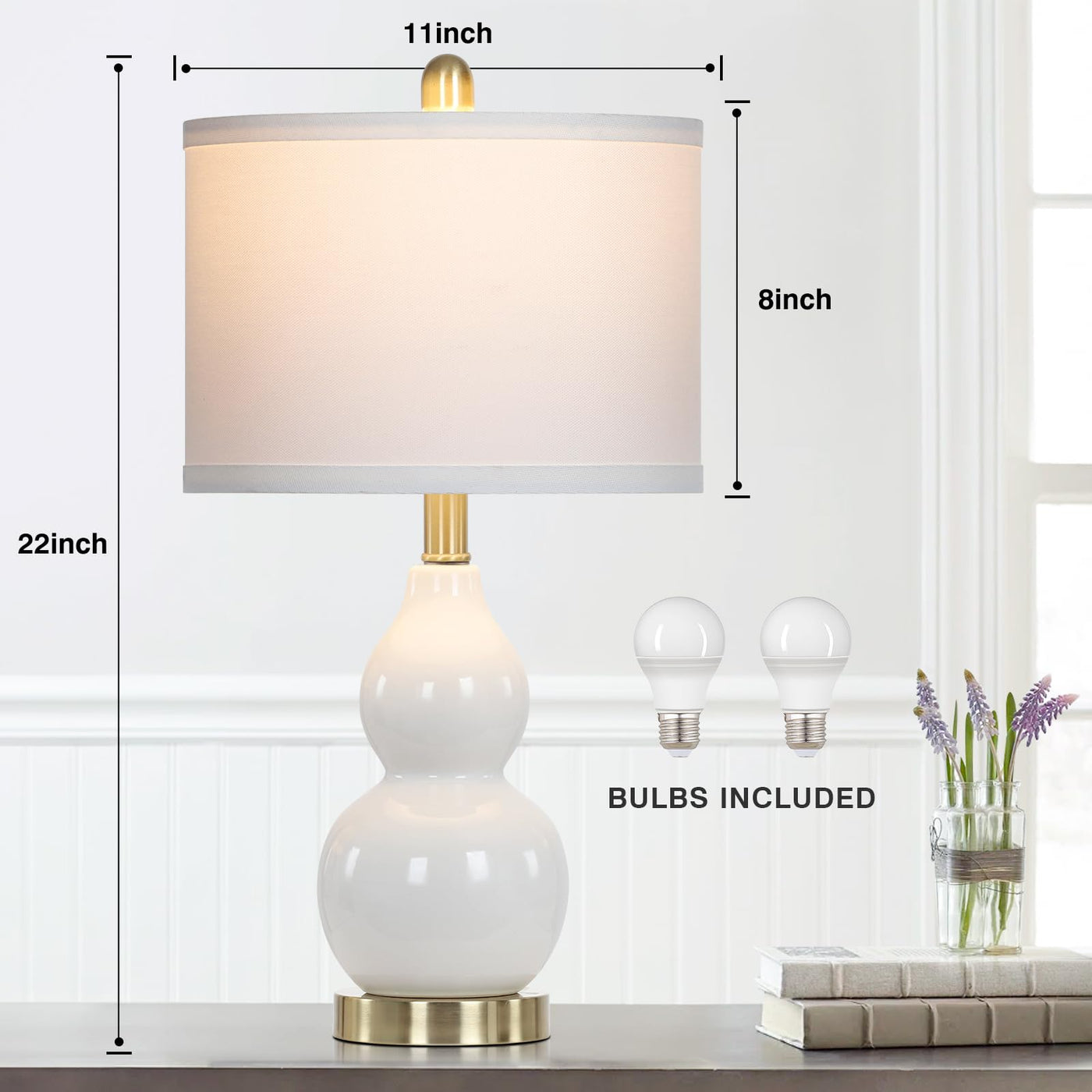 Rinweey Double Gourd Ceramic Table Lamps Set Of 2, Modern White Bedside Lamps For Night Stand, Contemporary Nightstand Lamps For