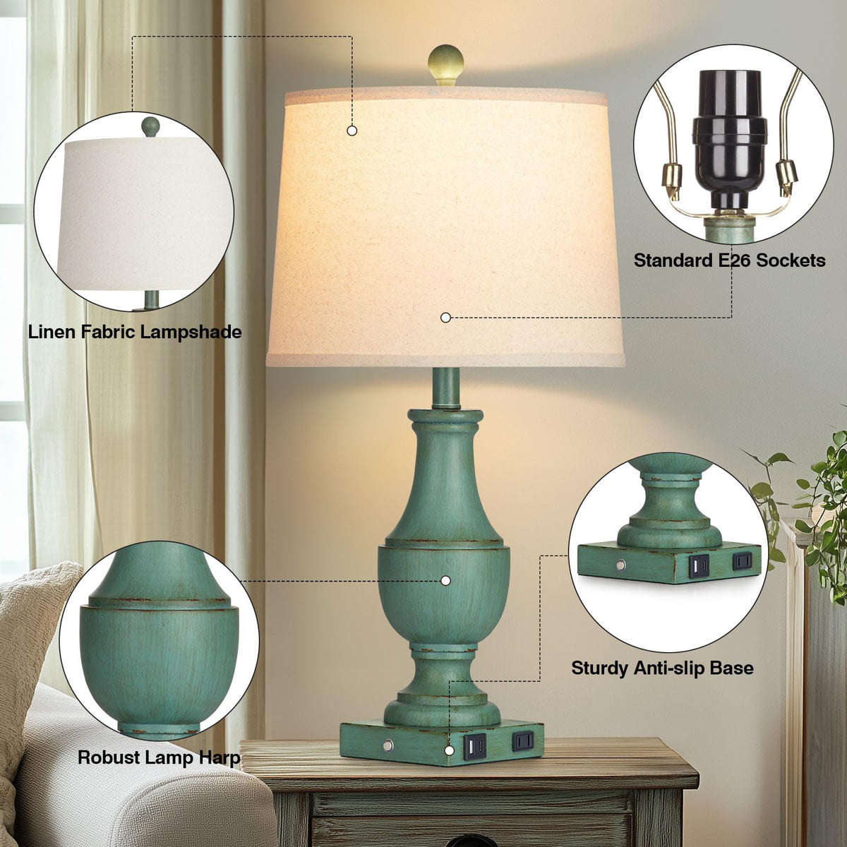 Rinweey Farmhouse Table Lamp Set Of 2, Rustic Touch Control 3-Way Dimmable Lamps With Usb A+C Charging Ports & Ac Outlet, Vintag