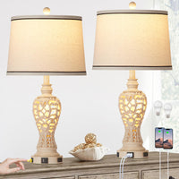 Rinweey Table Lamps Set Of 2, Farmhouse Table Lamps With Nightlight, Rustic Bedside Lamps With Dual Usb & Ac Outlet, 25.2'' Whit