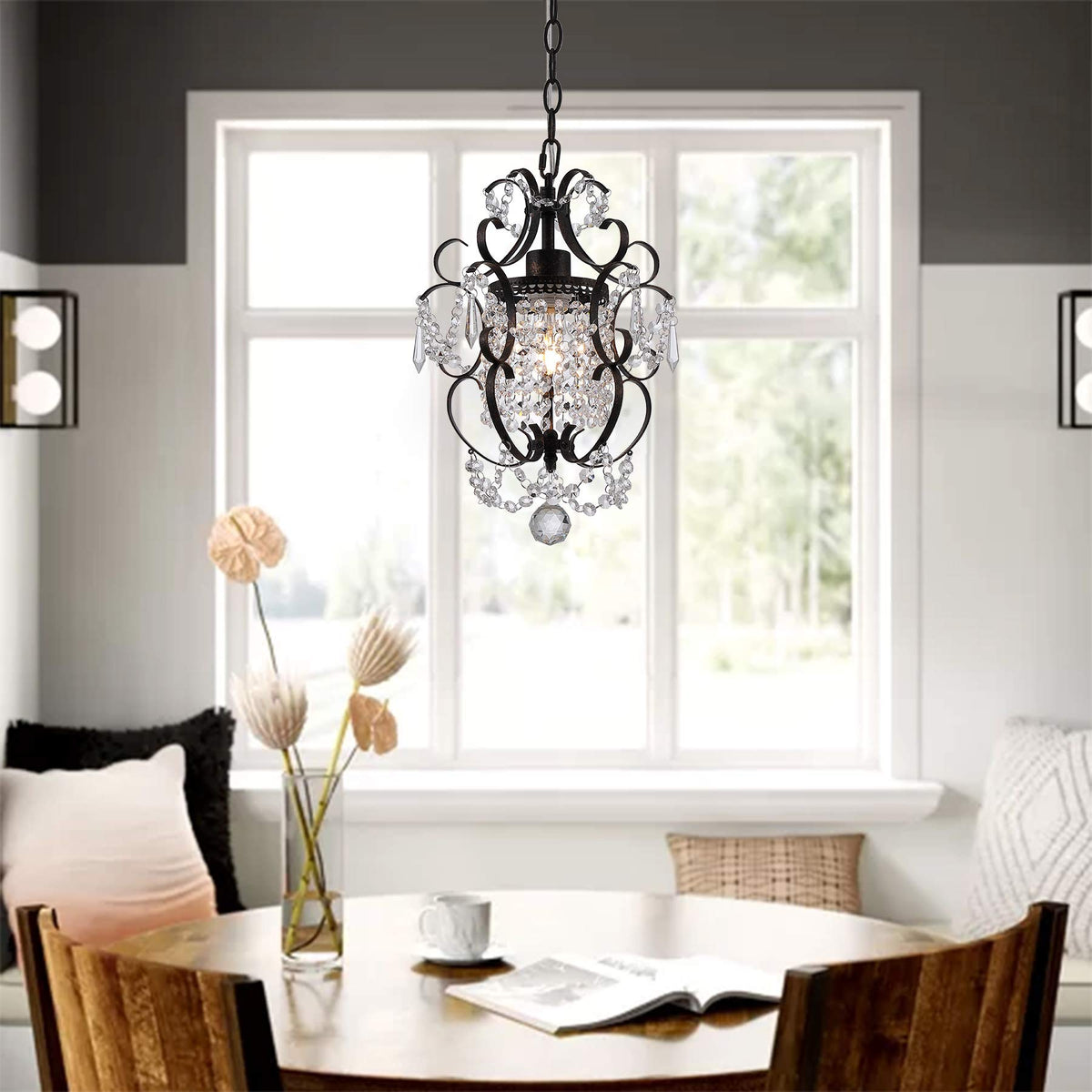 Riomasee Mini Chandelier Antique Bronze Chandeliers 1 Light Elegant Chandelier Crystal Iron Ceiling Light Fixture for Bedroom,Girls Room,Bathroom,Farmhouse This fixture features E26 socket that is compatible with a variety of bulb types, up to 100 watts maximum. Friendly Reminder: Turn off the power when installing cleaning or replacing the lamp Avoid scratching the surface and wires of the chandelier during installation Insulation gloves must be worn during installation This fixture does need to be hard wired. Professional installation is recommended Style: French Country,Contemporary/Art Deco Wattage per Bulb: MAX 100W Rated Voltage: 110V Materials: Metal Color: Black,Bronze,Gold,Chrome Bulbs: Bulb Not Included Suggested Room Size: 10-20 ? Incandescent - traditional tungsten filament clear , frosted bulb, Edison bulbs,led bulb The Candle Collection is a striking design, ideal for creating a dramatic entrance to a foyer or adding sparkle and light to your dining areas.