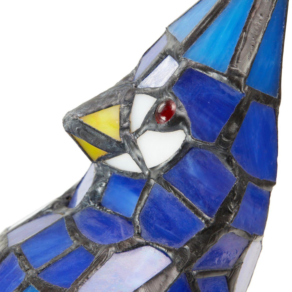 Transform your living space with the exquisite Blue Jay Stained Glass Lamp from River of Goods. This stunning antique-inspired table lamp is a perfect blend of artistry and functionality, designed for bird lovers and home décor enthusiasts alike.