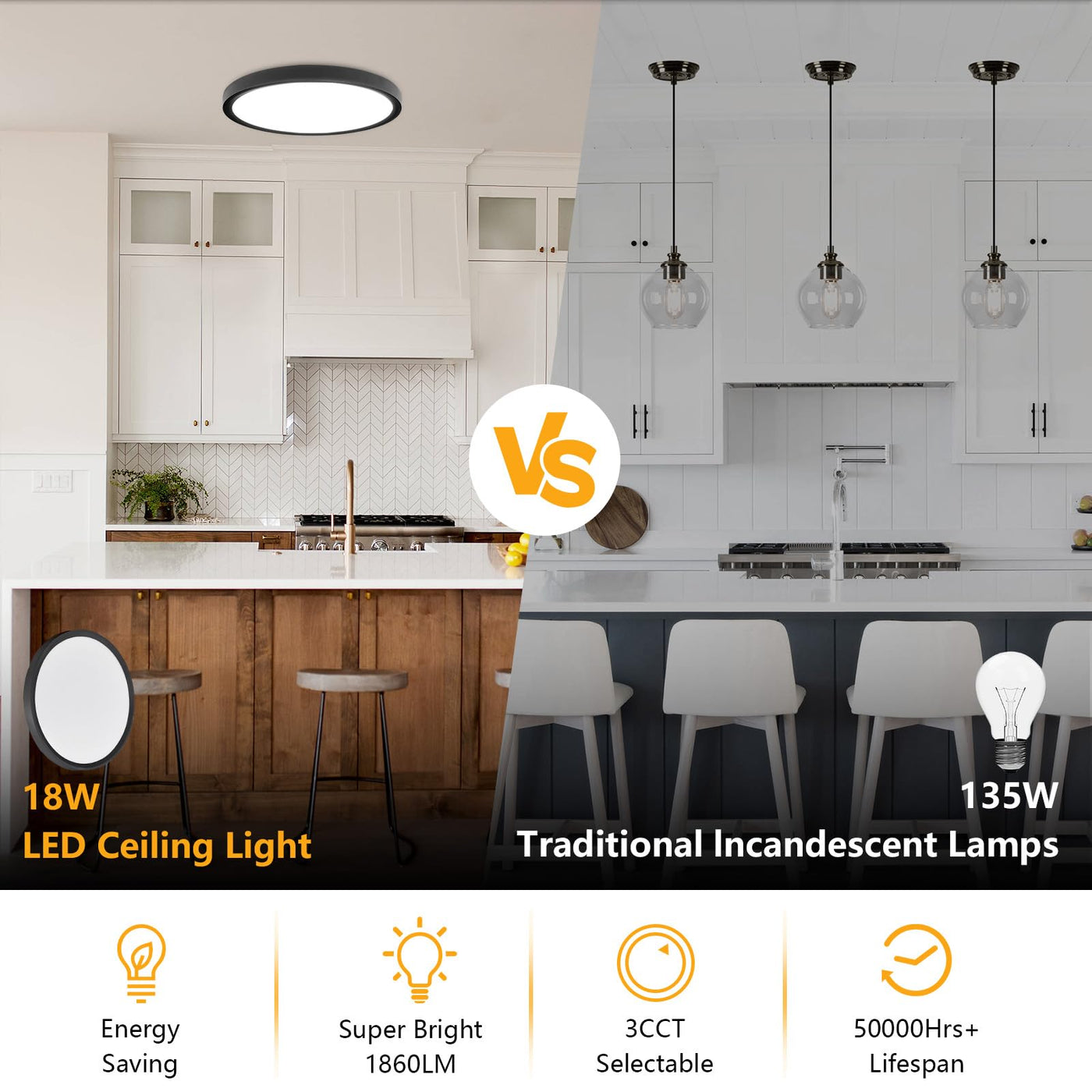 Constructed from well-made plastic, this ceiling light boasts a sleek and modern design that fits seamlessly into any decor. With an impressive output of 1860 lumens at only 18 watts, it delivers bright light while significantly reducing energy consumption. The low-profile design, measuring just 0.9 inches thick, allows it to sit closely to the ceiling, making it ideal for rooms with low ceilings. The fixture is equipped with advanced built-in LEDs that ensure soft, even lighting, minimizing glare and visual fatigue.
