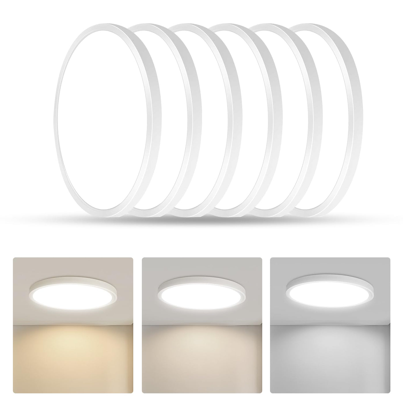Illuminate your spaces with the RLEDPZTX LED Ceiling Light Flush Mount. This 6-pack of 9-inch ultra-slim ceiling light fixtures is designed for efficient lighting in various settings, including kitchens, bedrooms, hallways, and bathrooms. With customizable color options and energy-saving features, it is an ideal choice for modern homes.
