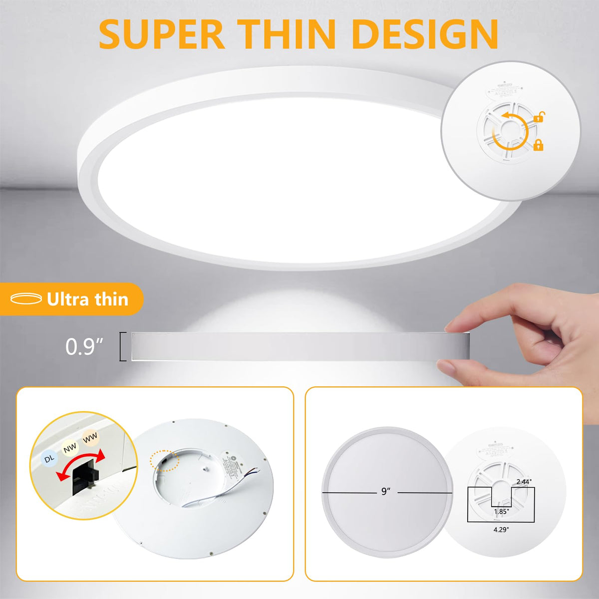 RLEDPZTX LED Flush Mount Ceiling Light 9 Inch 18W 1860LM 3CCT Selectable White, Round Modern Flat Panel, 6 Pack