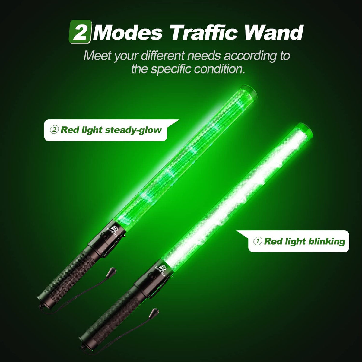 Roadhero 2 Pack 21Inch Traffic Wands, Green Led Traffic Control Baton, Night Safety Light Wand With 2 Flashing Modes, Air Marshaling Signal Wand With Side Clip For Airport, Parking, Car Directing
