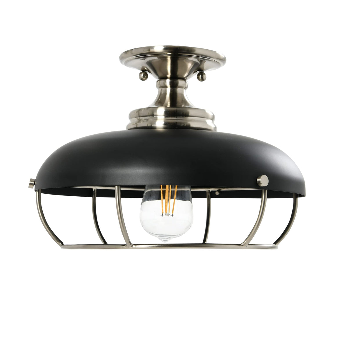 Robert Stevenson Lighting Presley - Caged Dome Metal Semi-Flush Mount Ceiling Light, Brushed Nickel And Matte Black