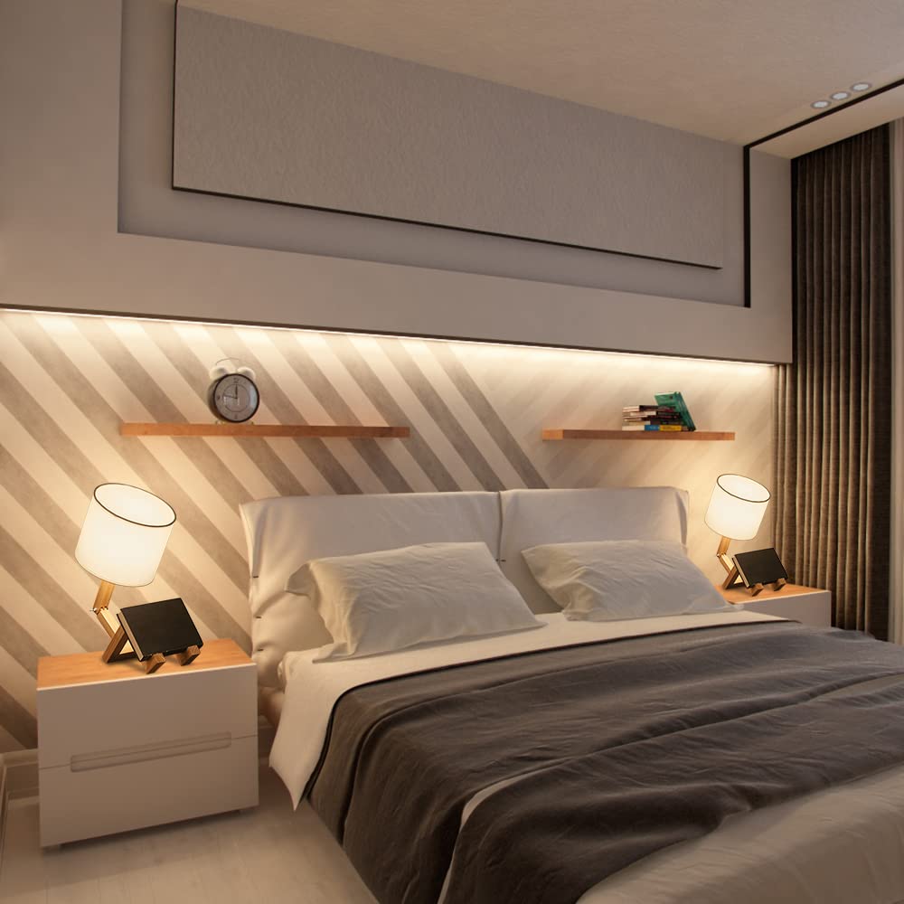Specifications:Unique Desk Lamp Set Of 2,Bedroom Lamps Set Of 2 Main Materials:Wood,Fabric Color Style:White,Solid Wood Color Size:Please Note The Dimensioned Drawing Of Set Of Two Lamps Lamp Holder:E26 Including Or Not With Bulbs:The Side Table Lamps Set Of 2 Without Bulbs Recommended Power Per Bed Side Lamp:Incandescent Bulbs Not Exceeding 40W,Led Bulbs Not Exceeding 15W Voltage:110-240V Lighting:The Nightstand Lamps Set Of 2 Is Suitable For Any Color Temperature Bulb,Such As White Light (6000K)/Warm Light (3000K)/Natural Light (4500K); Compatible With Bulbs With 3 Color Temperature Changes;Be Careful Not To Use Dimming Bulbs Switch Type:Button Switch On Power Cord Style:Simply Modern Suitable For Living Room, Office,Bedroom,Restaurant,Kitchen,Modern,Traditional And Industrial Interiors As Well As Shops,Bars And Restaurants.Cute And Unique Cool Robot Desk Lamp, Best Gift For Children/Kids;Christmas,Thanksgiving,New Year,Or Birthday Parties Are All Good Gifts. Adults Or Teenagers Are Also Suitable.The Small Desk Lamp Is Also Like A Toy,Suitable For People Who Like To Diy And Create Toy As Lego Toys.It Can Provide The Fun Of Assembling Toys.
