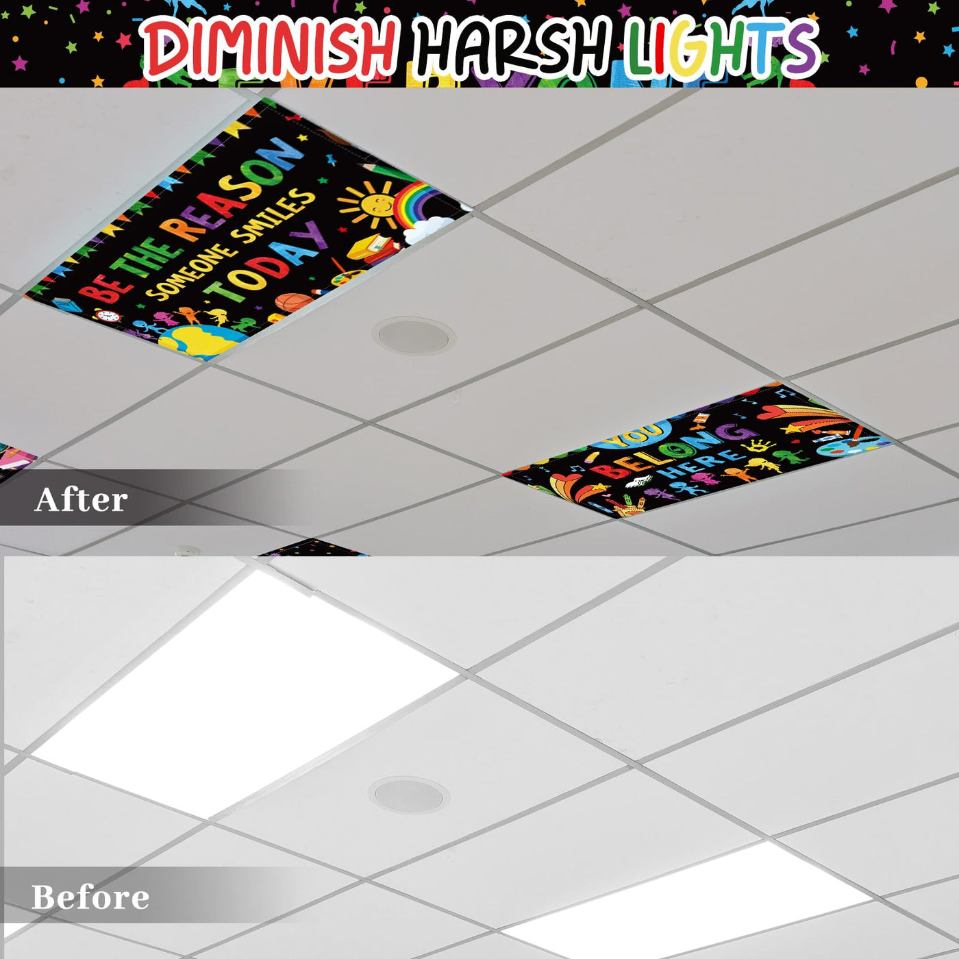 Q: How do these light covers help reduce glare?A: These light covers are designed to reduce harsh light and glare from ceiling lights, helping to relieve eye strain and providing a more comfortable lighting experience in classrooms, offices, and homes.