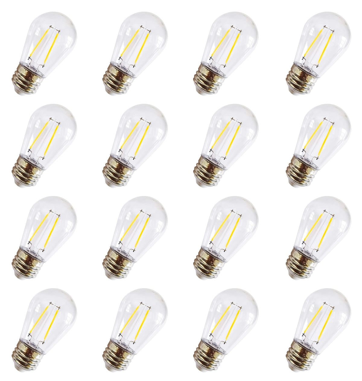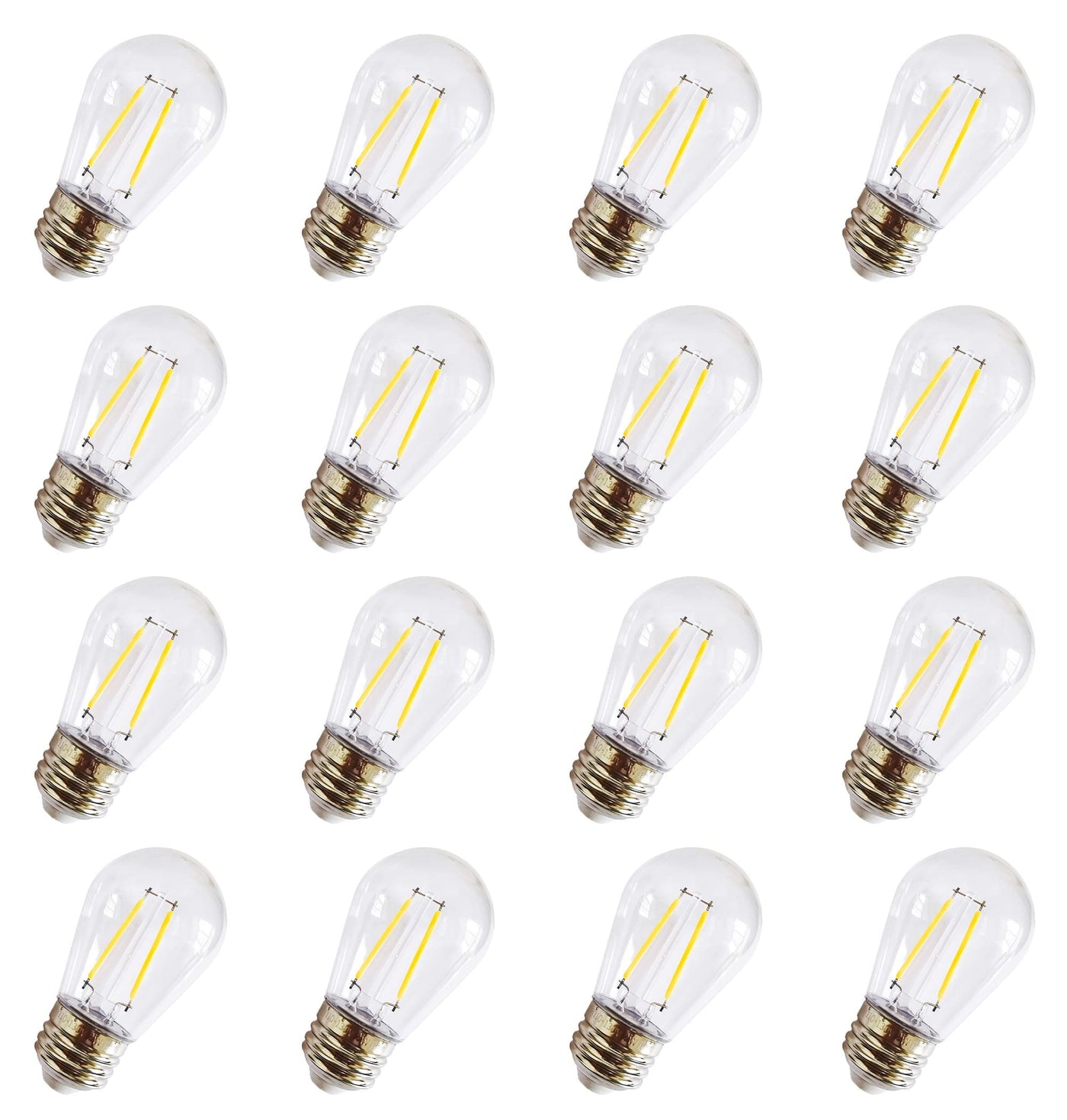 Rolay S14 Clear String Light Bulbs, 2W Plastic Led Replacement Bulbs For Outdoor Patio String Lights With E26 Base, Pack Of 16