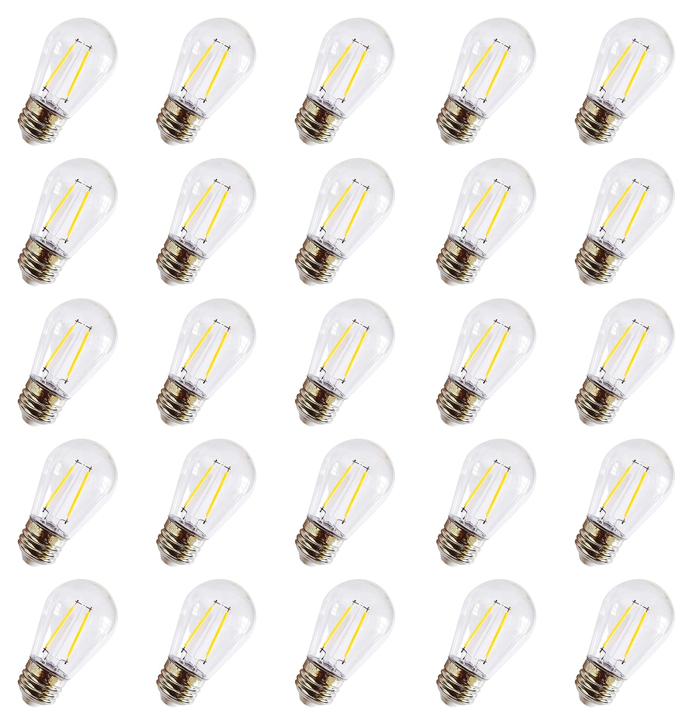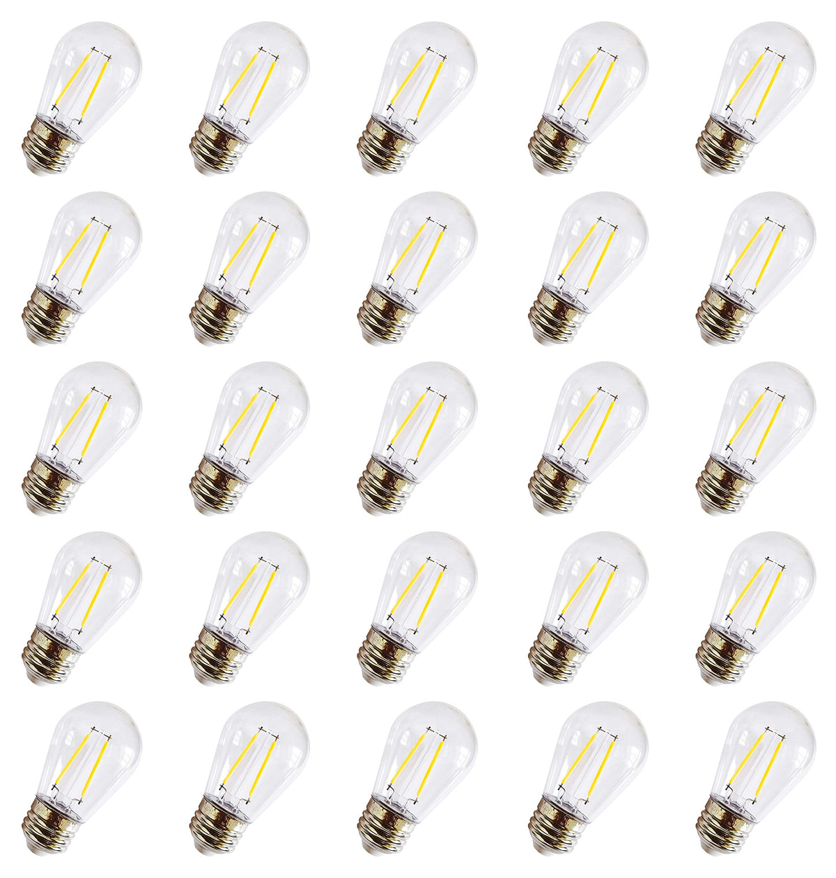 2 Watt Outdoor Light Bulbs, S14 Warm Replacement Bulbs Perfect Replacement Bulbs For The Heavy Duty Patio String Lights, Indoor And Outdoor Candelabra Screw Base Lighting Specifications Power Consumption: 2 Watt Input Voltage: Ac 120V Material: Plastic Color: Warm White Package Included: 25Pcs 2W Clear Led Bulbs Base Type: E26 Standard Mudium Base Diameter: 1.77 Inch Height: 3.27 Inch Special Features: Waterproof, Shatterproof