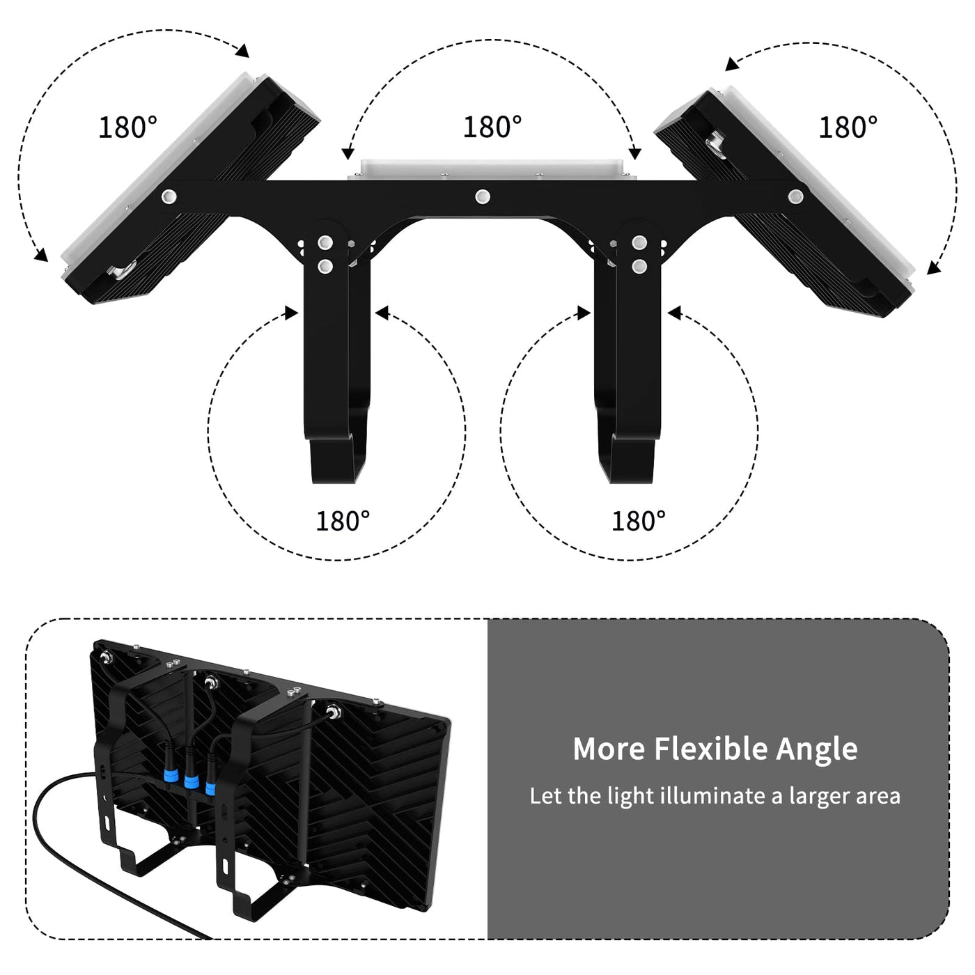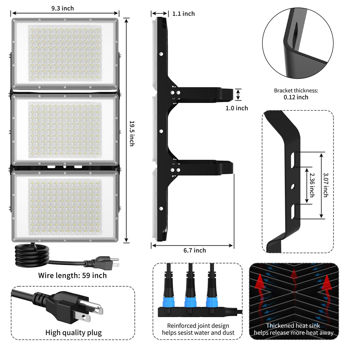 - **Adjustable Lighting Angle**: The innovative design includes three 200W LED floodlights with an adjustable angle triangle mounting kit. Tailor the projection angle of each light individually to optimize coverage and enhance visibility wherever needed.
