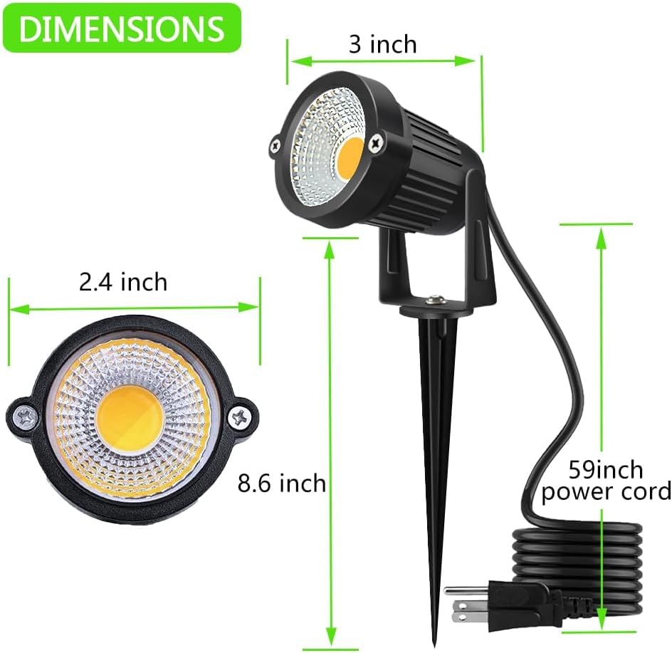 ?Upgraded Led Light Chips---10W Led Landscape Spotlight Is Up To 1100 Lumens High Brightness Upgraded Cob Led Chips Makes It Brighter Than Common Products Perfectly For Outdoor Landscape Lighting. ?Flexible Angle Adjustment---Led Landscape Spotlights Suit To 110/120V Ac. Comes With 59 Inch 3-Prong Us Power Cord Plug And Play. You Can Adjust The Emitting Angle By The 270 Degrees Rotating Bracket And Spike Base. ?High Efficiency & Energy Saving---Outdoor Led Spot Lights With 1100 Lumens Output Under Only 10W Power Consumption. 3000K Warm White Provides Soft And Comfortable Lighting Effect. ?Excellent Metal Material---Landscape Spot Lights Outdoor Adopt Upgraded Die-Cast Aluminum Lamp Body And well-made Led Chips. It Has A Stable Lighting Performance Longer Service Life Up To 50 000 Hours Reduce Your Maintenance Costs. ?Hassle Free Warranty---Ip65 Waterproof For Outdoor Use. Widely Used For Garden Yard Lawn Flags Park Patio Driveway Potted Landscape Flower Bed Etc. Romwish Provides 3-Year Unlimited Warranty! If You Have Any Question About This Product Please Feel Free To Contact Us For A Quick Solution.