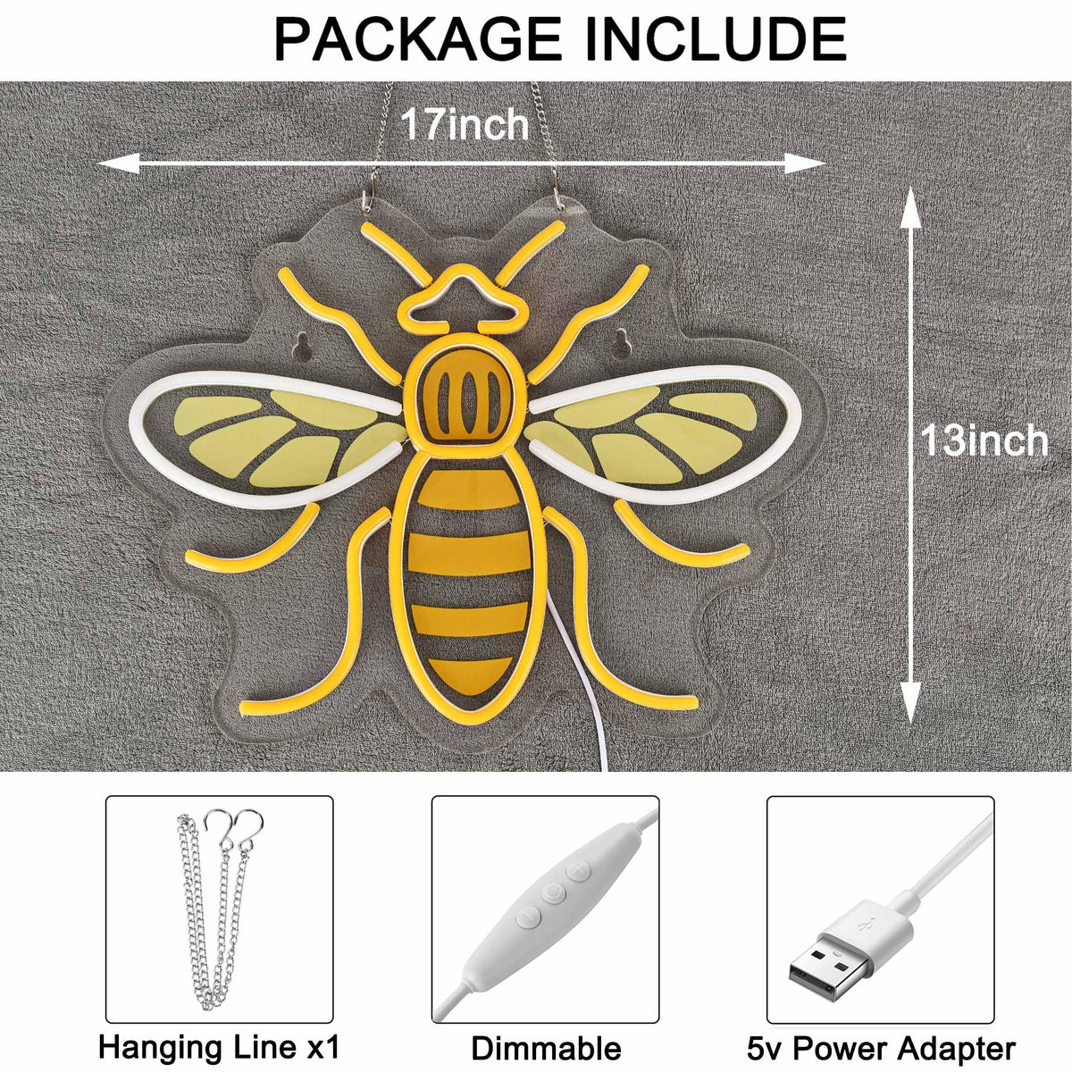 Q: What are the dimensions of the Bee Neon Sign?A: The Bee Neon Sign measures 17 inches in height and 13 inches in width (420mm x 320mm), making it a perfect decorative piece for various wall spaces.