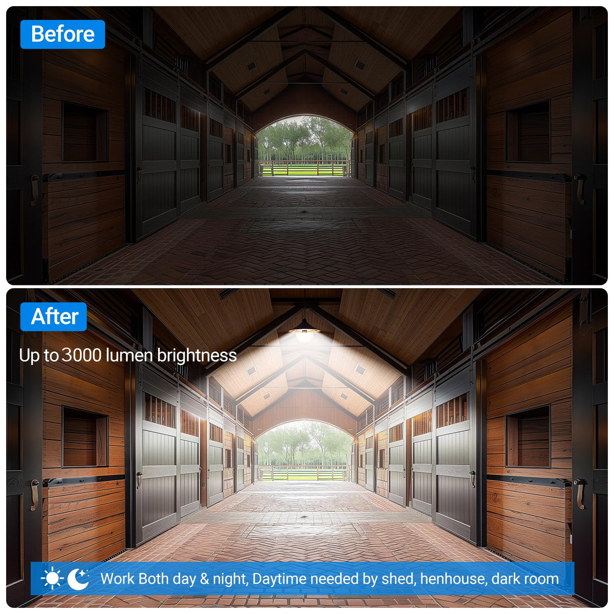 Q: How bright is the Ropelux Solar Shed Light?A: The Ropelux Solar Shed Light offers an impressive brightness of up to 3000 lumens, providing ample illumination for your shed, garage, or workshop both day and night.