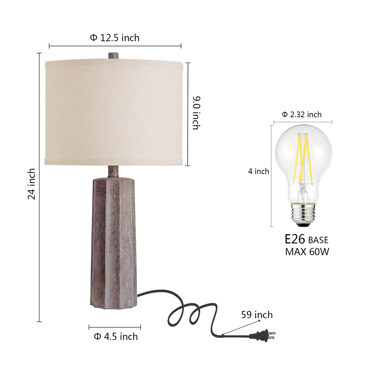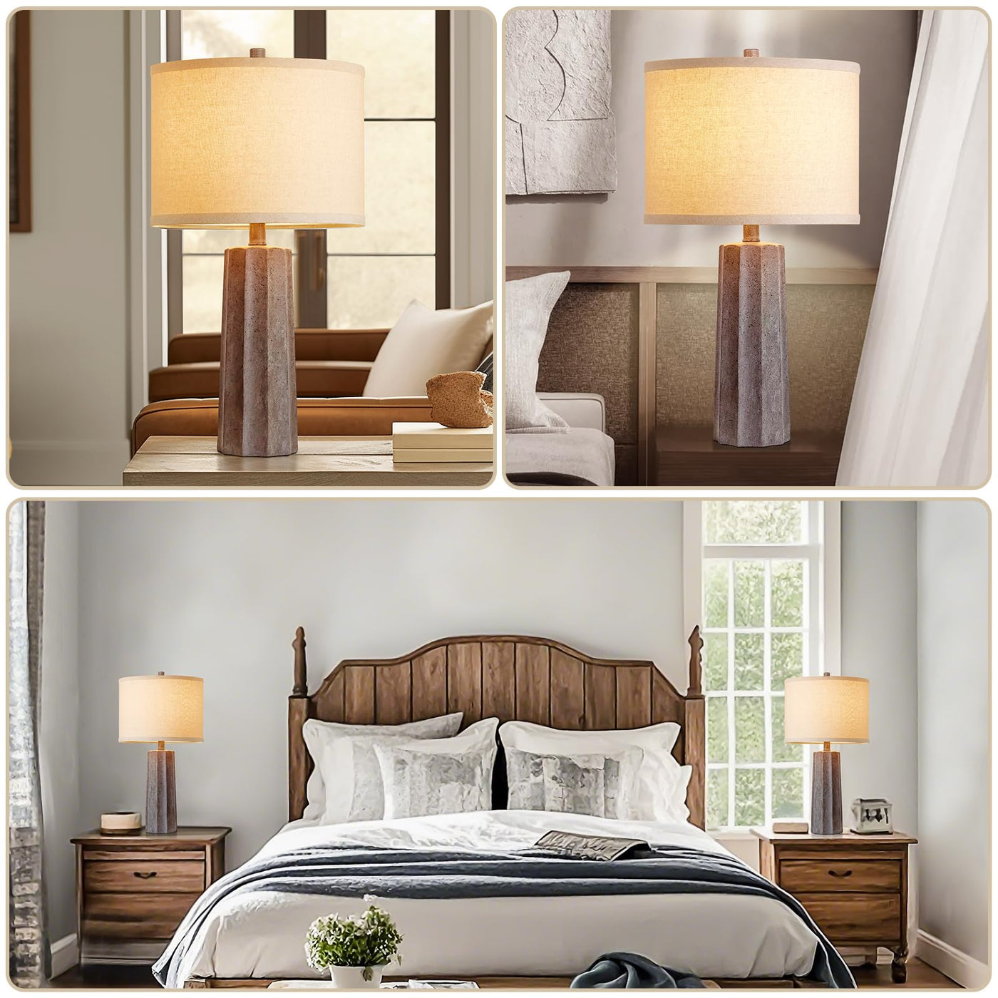 Roriano 24'' Farmhouse Resin Table Lamps Set Of 2 For Bedroom Living Room Vintage Traditional Desk Lamps Rustic Nightstand Bedsi