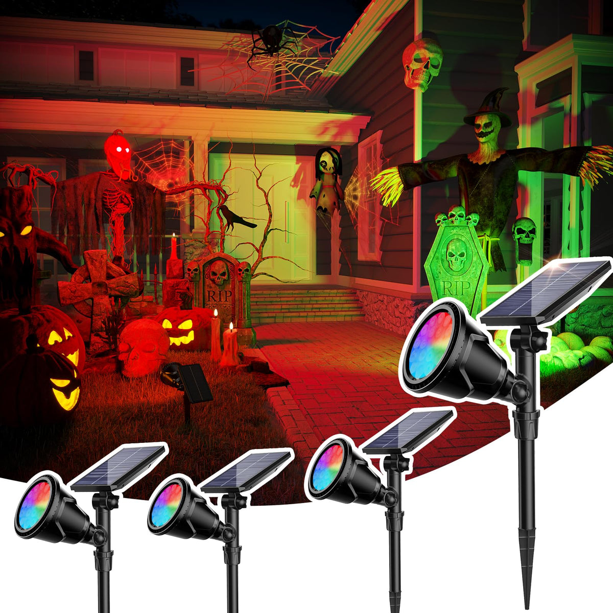 Roshwey Solar Outdoor Lights, 9 Modes, Waterproof Colored Spotlights For Garden, 4 Pack
