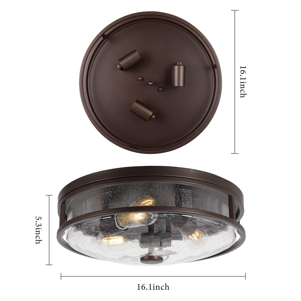 Rosient 16 Inch Large Flush Mount Ceiling Light Fixture With Seeded Glass, Bronze Round Ceiling Lamp Shade, Modern Farmhouse Ind