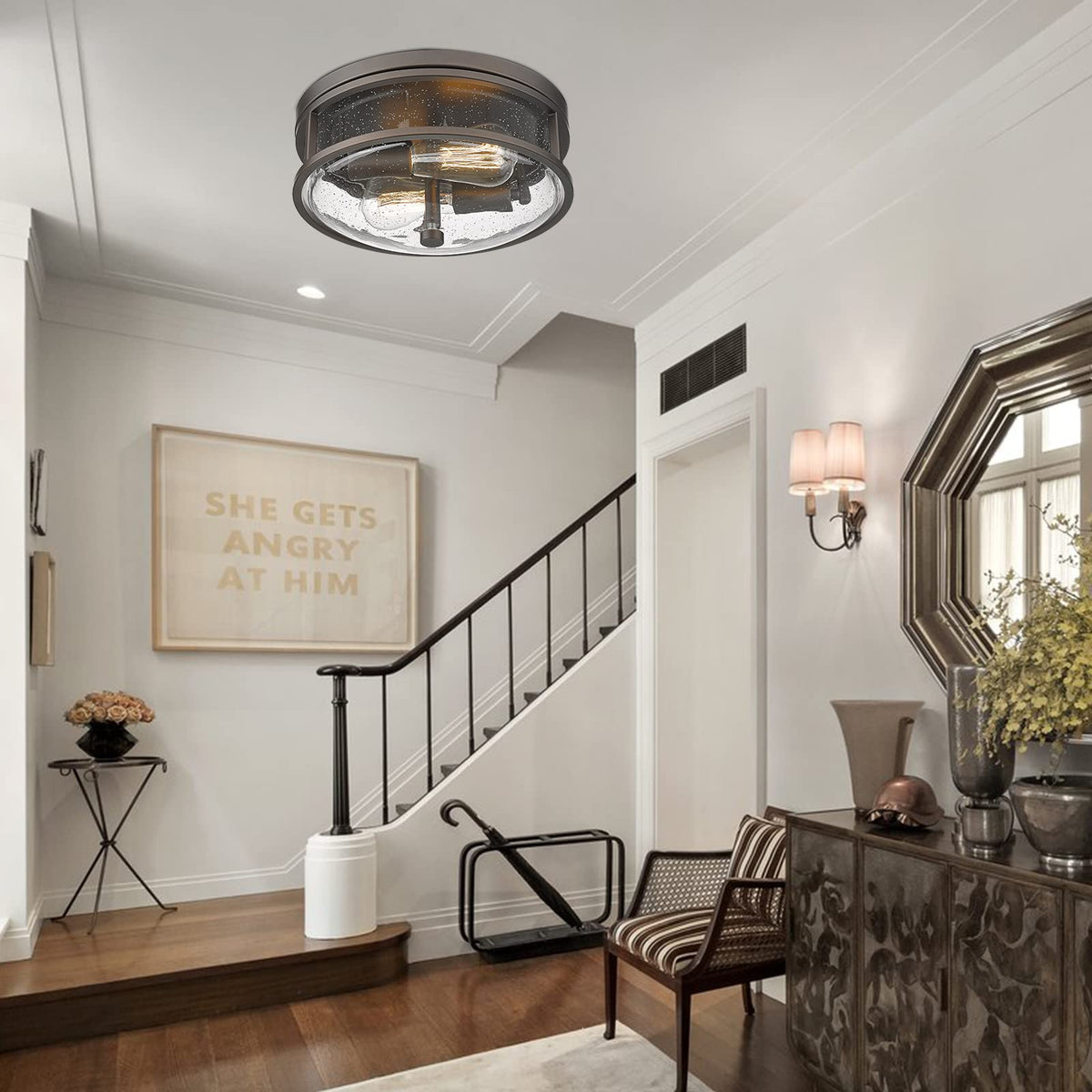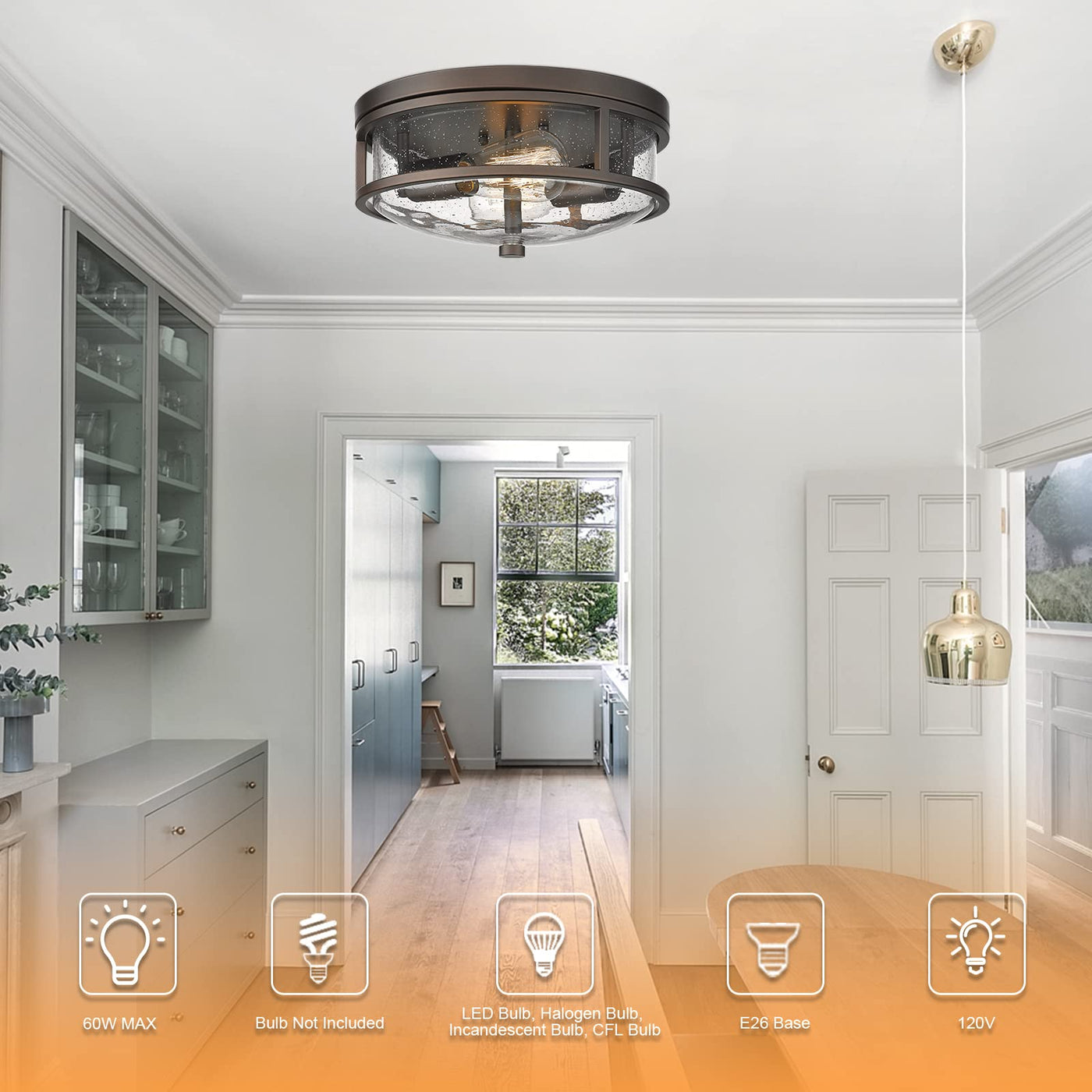 Rosient Flush Mount Ceiling Light Fixture, 12 Inch 2-Light Modern Farmhouse Ceiling Light With Seeded Glass For Bedroom, Entrywa