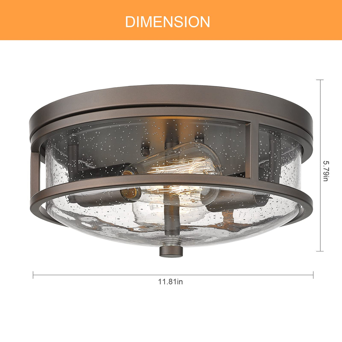 Rosient Indoor Flush Mount Ceiling Light Fixtures Our Advantage: Beautiful Seeded Glass Shade The Seeded Glass Shade Has A Good Reflection Effect On The Light Source,Adding Beauty To Decorate The Interior. Sturdy Metal Cage Industrial Vintage Style Metal Cage Makes Your Interior More Natural And Comfortable. Easy Installation. Includes All Mounting Hardware. Etl Listed With A One-Year Warranty. Specifications: Material: Metal And Seeded Glass Size: 11.81 Inch Diameter,5.79 Inch Height.Please Refer To The Installation Manual For The Detailed Dimensions Bulb Type: E26 Bulb Base.