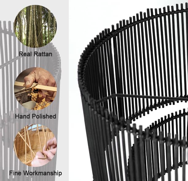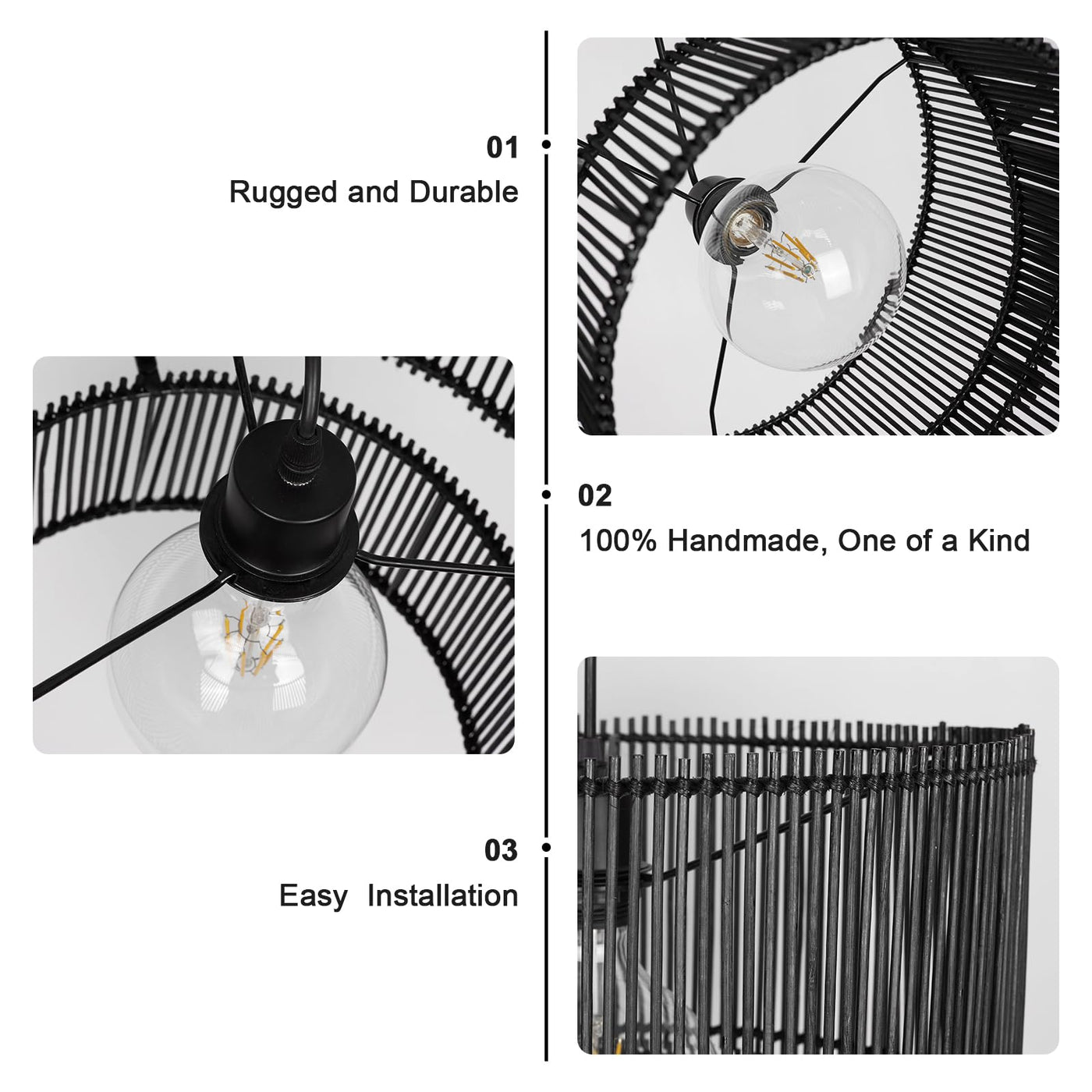 Rosient Woven Rattan Pendant Lamp, 16 Inch Large Natural Simple Hand Weaved Coastal Beach Black Rope Hanging Pendant Light Fixtu