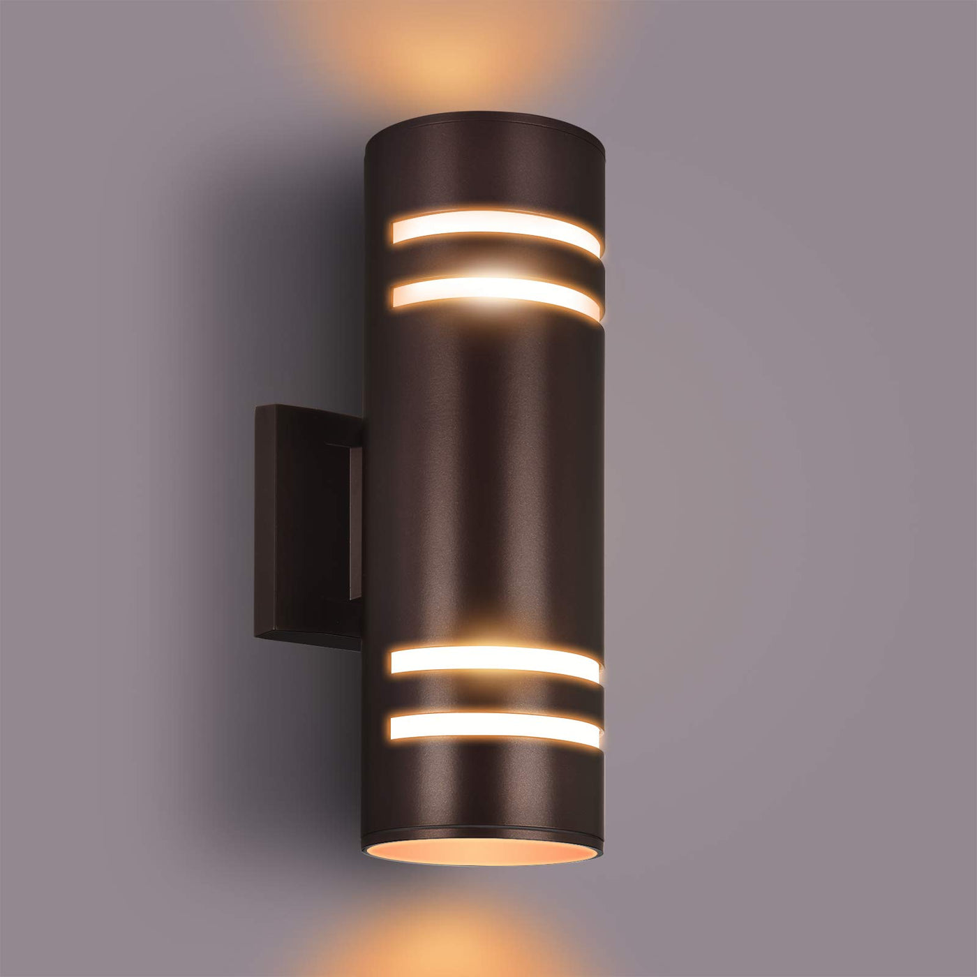 Rosykite Outdoor Wall Lights, Modern Exterior Sconce, Oil Bronze Cylinder, Up Down Lighting