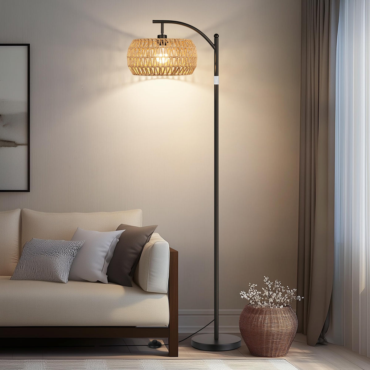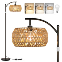 Q: How does the rattan shade contribute to the lamp's design?A: The removable hand-woven rattan lampshade of the ROTTOGOON Boho Floor Lamp adds a unique bohemian touch to your home decor. Its innovative design allows for versatile display options, fitting seamlessly into various styles such as contemporary, vintage, and farmhouse.