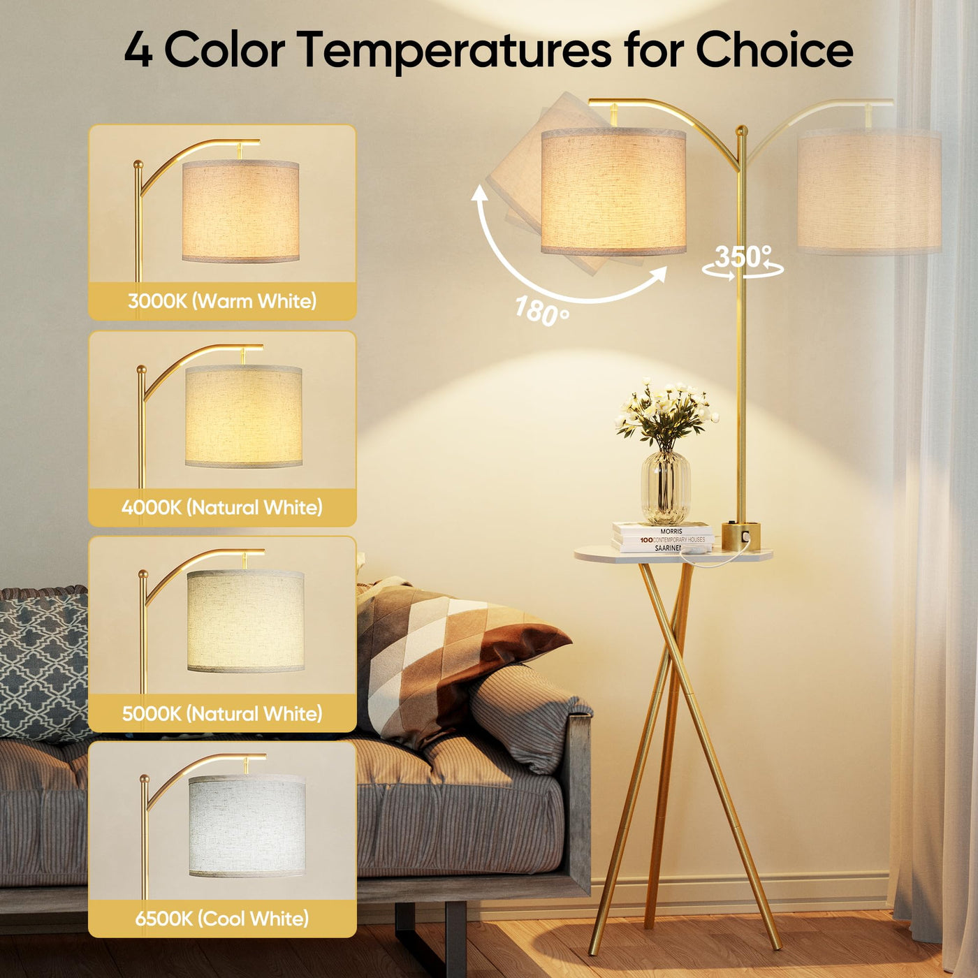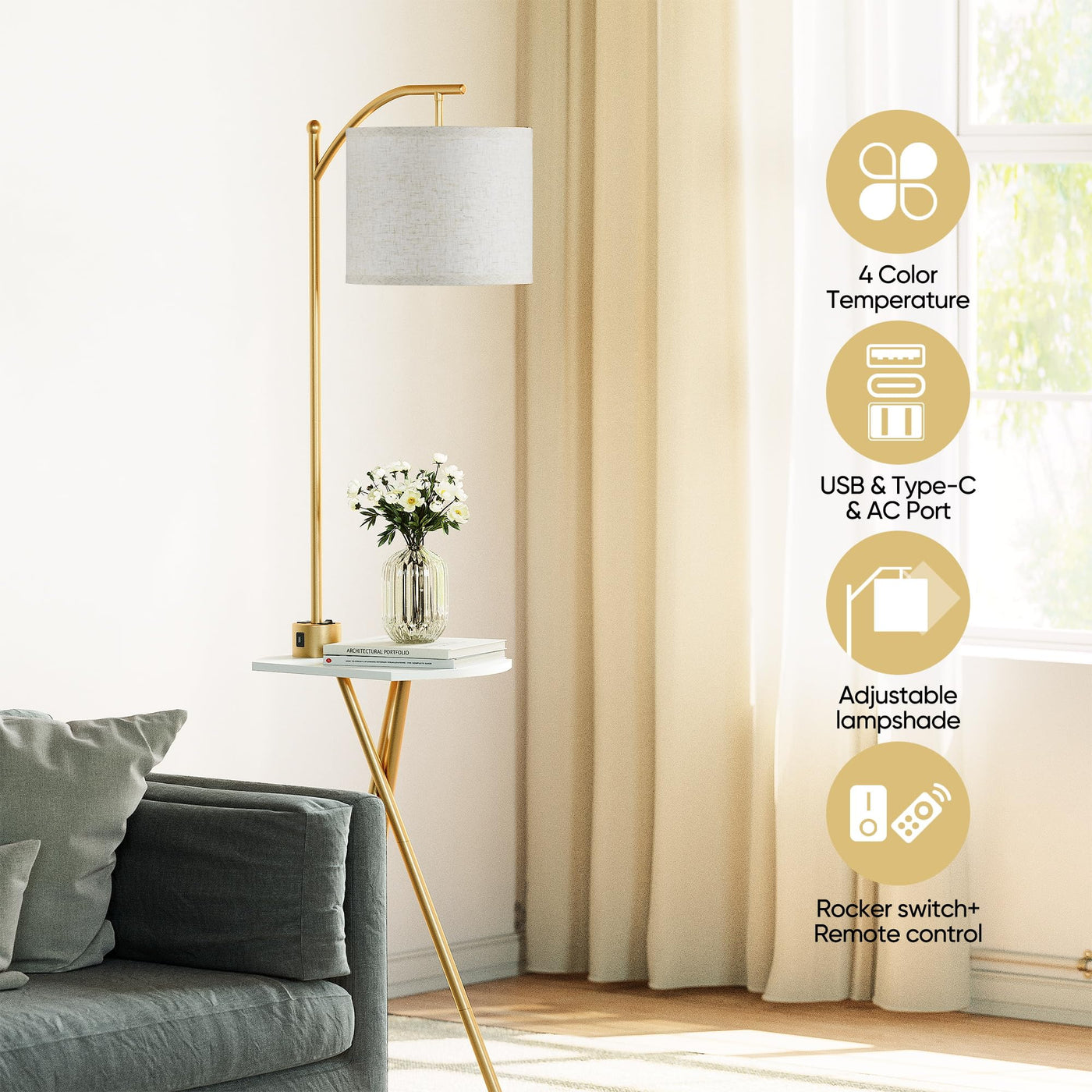 ROTTOGOON Floor Lamp with Table, Remote Control, Charging Station, 4 Color Temperatures, Gold, Model ROFP092AJ1