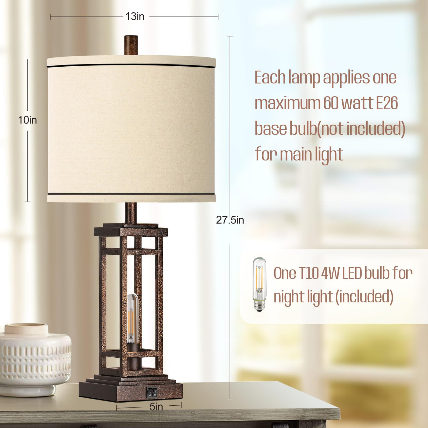- **Dual Lighting Options**: This set of two 27.5-inch lamps provides multiple lighting choices with a 4-way rotary switch, enabling you to choose between the top light, night light, both on, or both off. Perfect for reading or creating a cozy ambiance at bedtime.