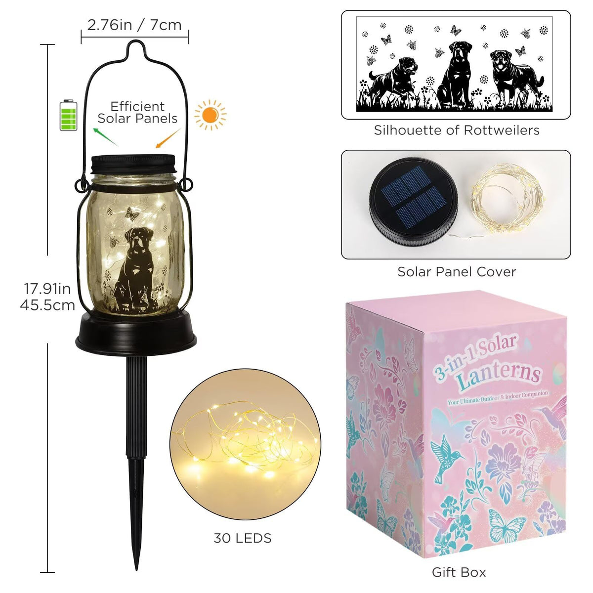 Rottweiler Gifts For Women/Men, Rottweiler Solar Lanterns Dog Mom Birthday, Dog Lovers Lantern, Pet Loss Pet Memorial Lights, Solar Garden Decoration Outside For Yard, Patio,Backyard,Porch