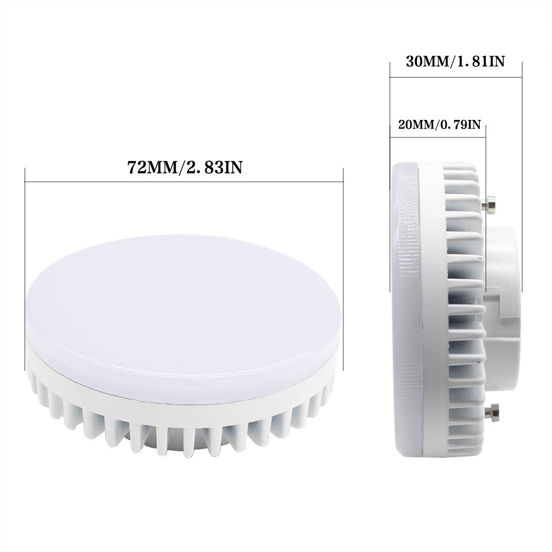 Specifications: Base: Gx53 Power: 8W Beam Angle : 120 degrees Input Voltage: AC 85-265V LEDs: 48pcs 3528 SMD LED Size: 75mm x 25mm Net weight: 60g x 2 Luminous Flux(Lm): 800lm Color: Warm white(3000K) CRI:=80 Non Dimmable