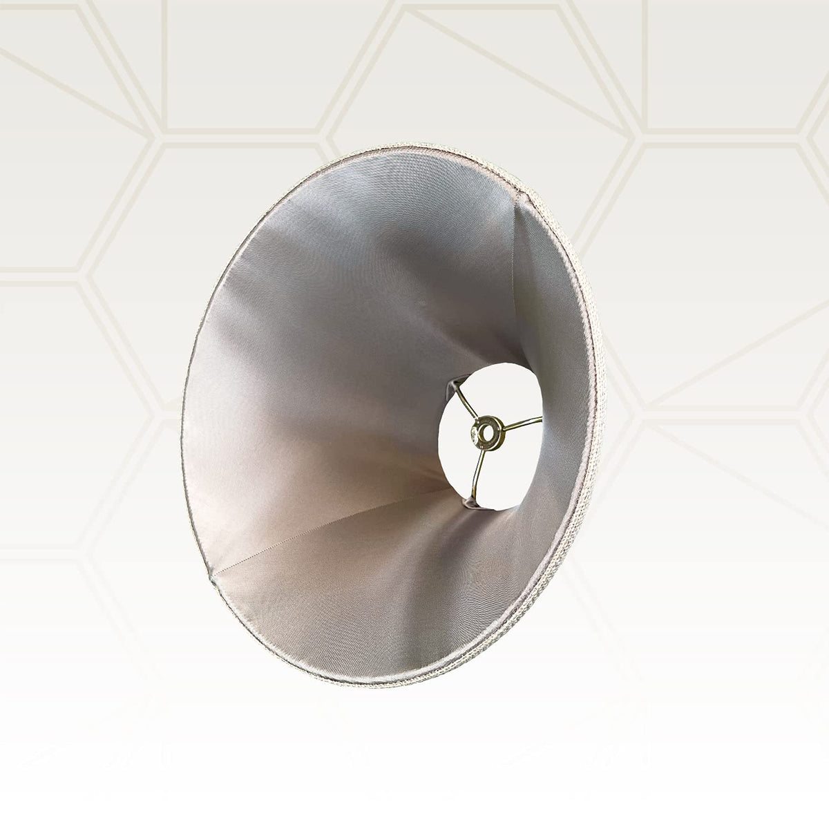 Q: What materials are used in this lamp shade?A: This lamp shade is made from silk-type shantung fabric with a premium off-white styrene lining, providing both durability and an elegant appearance.