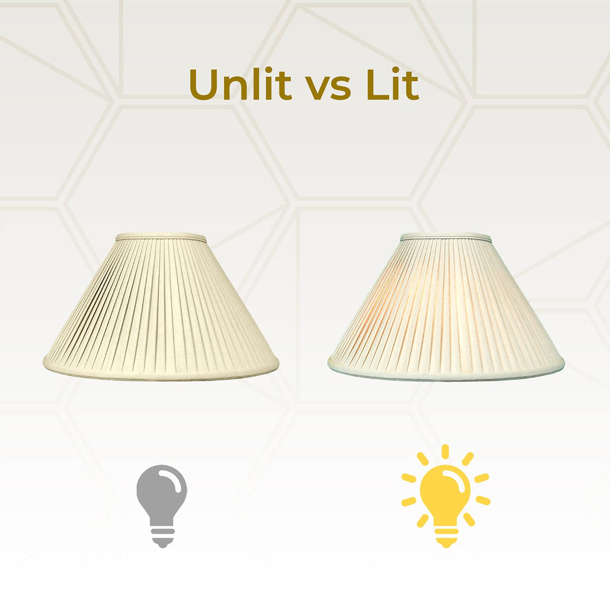 Q: What materials are used in the Royal Designs Coolie Empire Side Pleat Lamp Shade?A: The lamp shade is crafted from high-quality linen fabric and features a premium off-white softback lining made from a poly-cotton blend, ensuring durability and a sophisticated appearance.