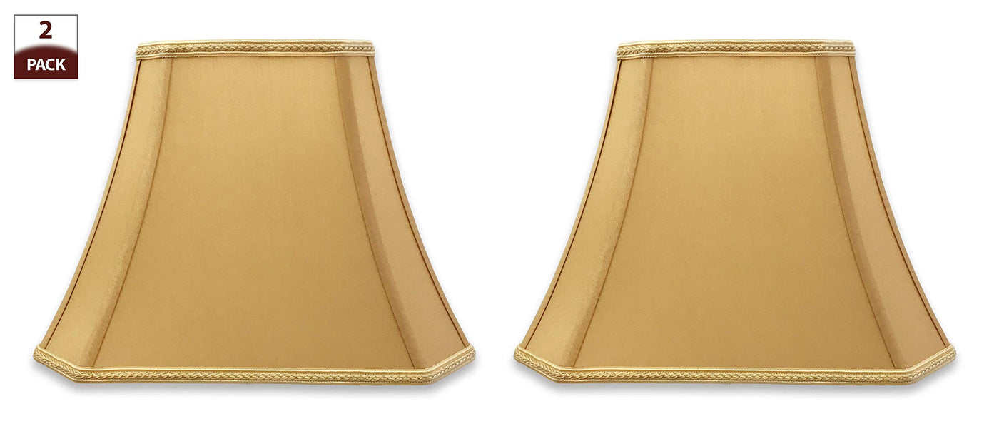 This Rectangle Bell w Cut Corners Designer Lampshade is a part of Royal Designs, Inc. Timeless Designer Shade Collection and is perfect for anyone who is looking for an elegant yet detailed lampshade. Royal Designs has been in the lampshade business since 1993 with their multiple shade lines that exemplify handcrafted quality and value. Exterior Fabric: Hand Tailored Silk-Type Shantung except Linen, Mouton, Burlap Faux Rawhide fabrics Interior Fabric: Off-White softback lining Black, Burlap Faux Rawhide fabrics have gold lining Washer: Standard brass-finish spider fitter, use a finial to fasten shade. Trim: Top and bottom trim single or double with vertical piping Frame: Heavy grade rust resistant metal frame Bulb: Suggested maximum wattage is 150-watt for most sizes clip on shade max 60W Height is measured by slant height from top to bottom of the lampshades front face. Please measure your existing shade--a replacement harp may be needed for a proper fit or additiol adjustment if changing height of shade.