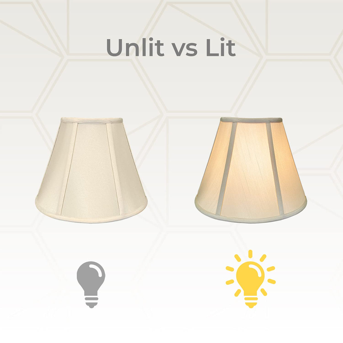Q: What materials are used in this lamp shade?A: This lamp shade is crafted from premium silk-type shantung fabric and features a sturdy off-white styrene lining, ensuring durability and a classic aesthetic.