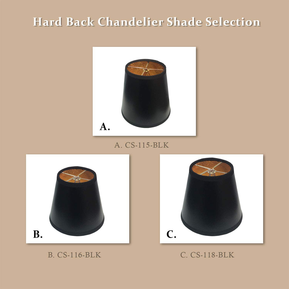 Royal Designs, Inc. 4-Inch Hardback Empire Chandelier Shade is available in an assortment of colors to match your unique style and taste. The exterior fabric of this lovely chandelier shade is made from a poly-cotton blended silk-type shantung fabric that will work well with any home décor. The clip is a single flame clip that is intended for use with a candelabra style light bulb, which is typically associated with chandeliers, wall sconces or small accent lamps. Since 1993, Royal Designs, Inc. has been designing high-end lampshades that exemplify the hand crafted quality and great value that we are known for. The height is measured by slant height from top to bottom of the lampshades’ front face. Use our stylish lamp shades for table lamp.