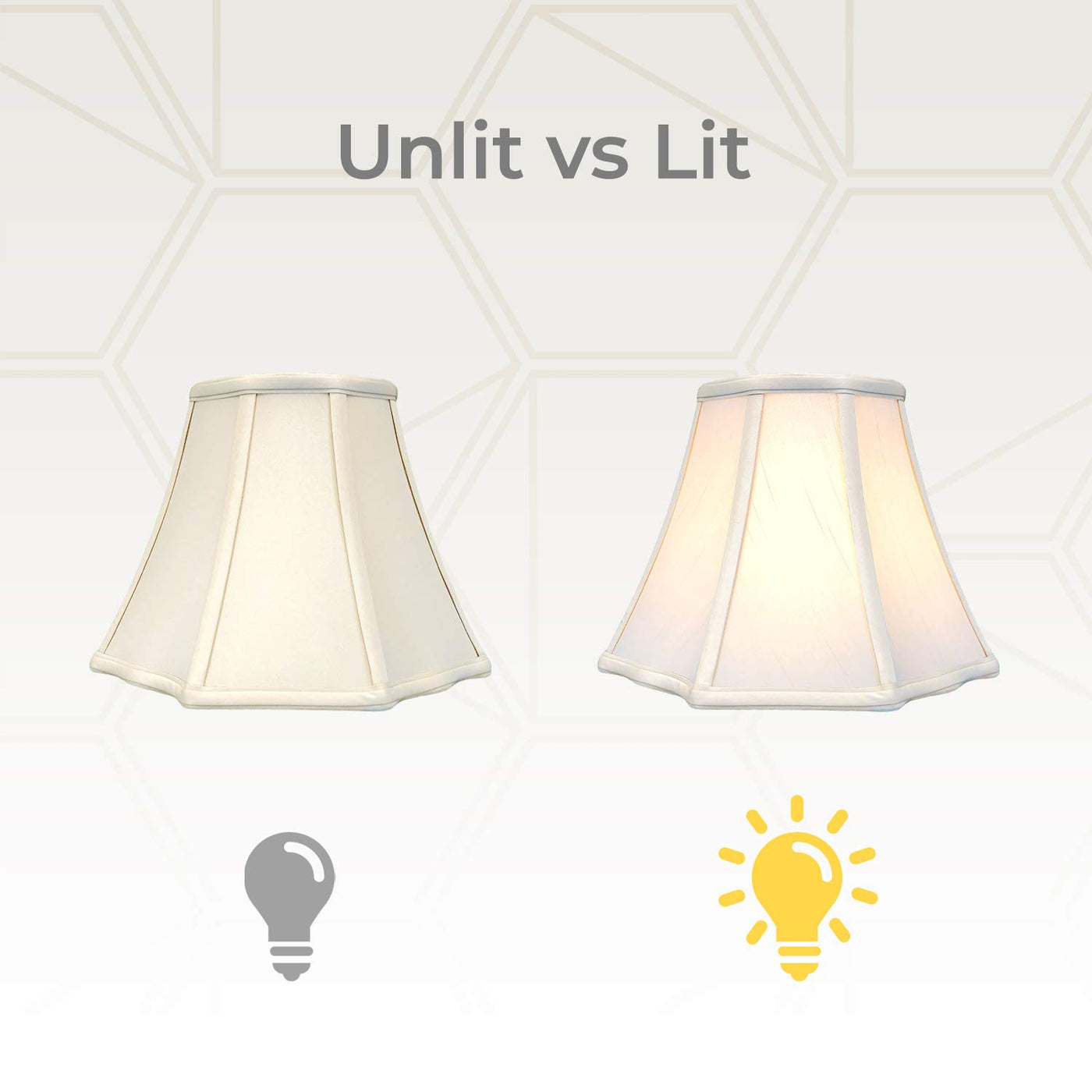 The Flare Bottom Outside Corner Scallop Lampshade is a part of Royal Designs, Regal Basic Shade Collection. Our traditional shade gets an upgrade with a subtle scalloped flare at the bottom. Hand tailored silk type shantung fabric with an off-white softback lining. This shade is sure to look great in any room. Perfect for updating or repairing an antique or cherished home lamp. Royal Designs has been in the lampshade business since 1993 with their multiple shade lines that exemplify handcrafted quality and value. Height is measured by slant height from top to bottom of the lampshades’ front face. Measurements listed as (TOP x BOTTOM x HEIGHT). Please measure your existing shade--a replacement harp may be needed for a proper fit or additional adjustment if changing height of shade.