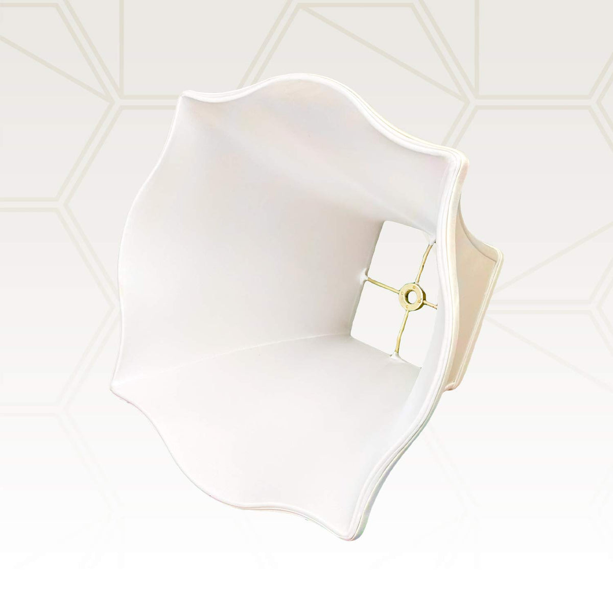 Q: What material is the lamp shade made from?A: This lamp shade is crafted from hand-tailored silk-type shantung fabric with a premium off-white softback lining, which enhances its elegance and creates a warm, soft glow.
