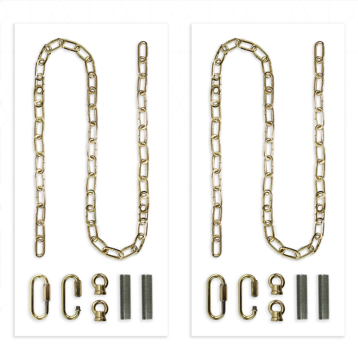 The Royal Designs Fixture Chain features lock buckles, screw-in hooks and threaded pipes which give you convenience and flexibility of using the chains in a multitude of ways! The lock buckles allow you to interlock chains together or connect to mounting hardware (like the included mounting hook with threaded pipe) Create a stylish garden fence, or a DIY bird feeder, or even a unique artistic hanging display. The possibilities are endless! The Heavy Duty Lighting Fixture Chain from Royal Designs is the ultimate chain for hanging your chandeliers, pendant lights, and even flower pots! Available in five beautiful finishes, our chains will match any space and compliment any decor! Our chains are sturdier than most, capable of holding up to 60 pounds, making it perfect for protecting your priceless chandelier, one-of-a-kind ceiling light, or even delicate plants. We pride ourselves on providing products that are not just functional and stylish, but also made to last. Our chains are coated in a protective lacquer that prevents tarnishing, meaning they’re great for both indoor and outdoor use. The lock buckles are user-friendly while also being solid and rugged. You can rest easy knowing that whatever hangs from our chain will only come down when you want it to! Choose from a set 1, 2 or more!